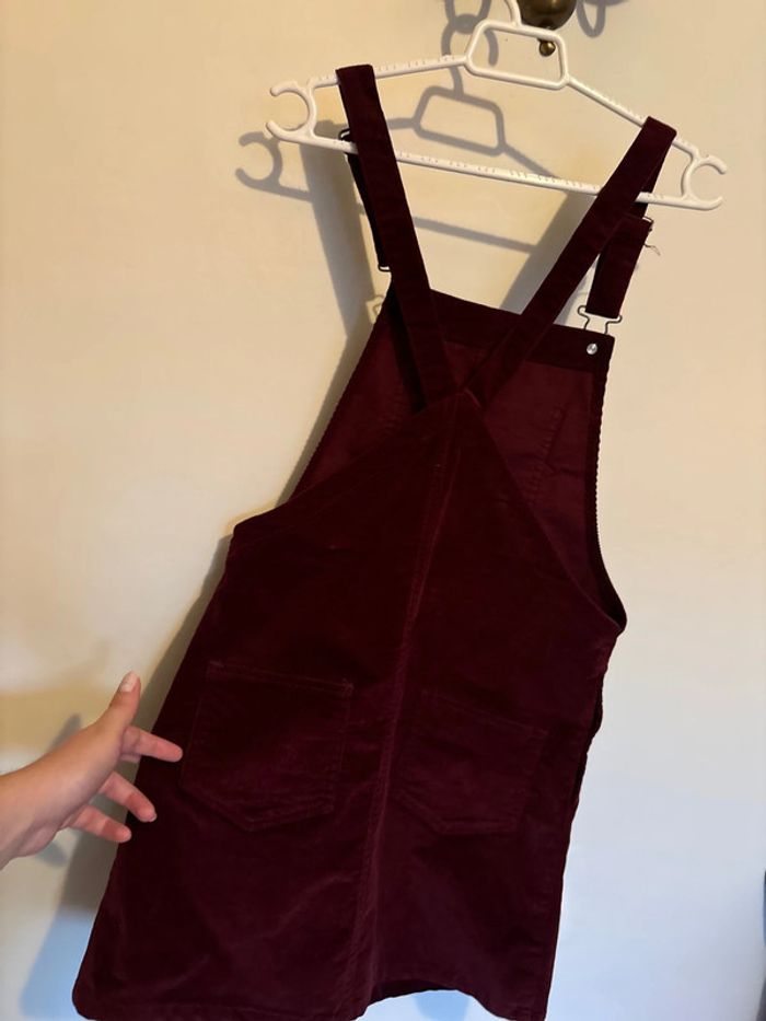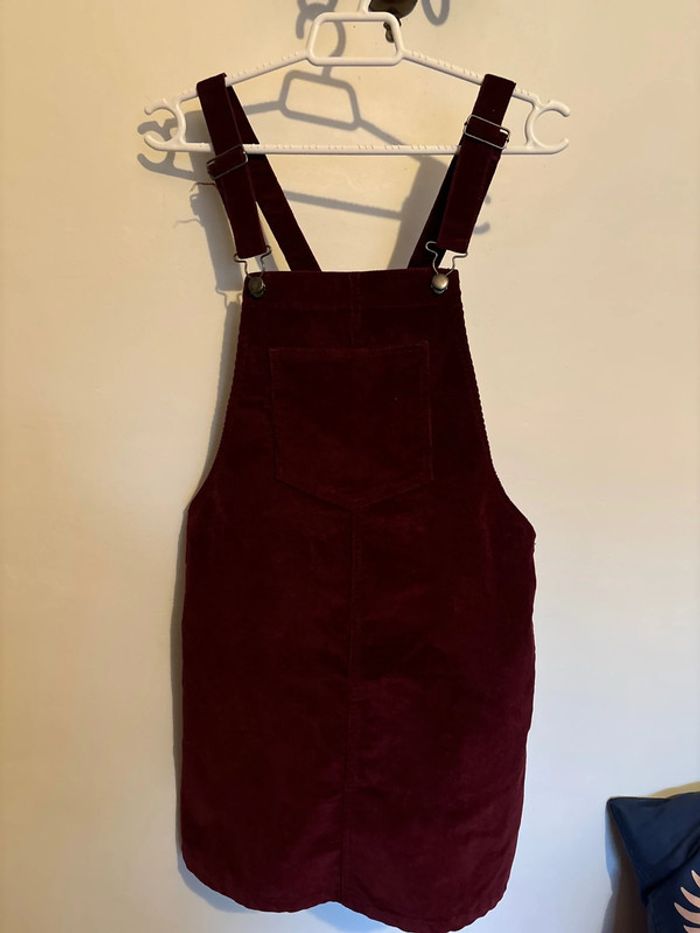 Robe courte salopette bordeaux Poches à l’arrière Effet velours côtelé Jamais porté