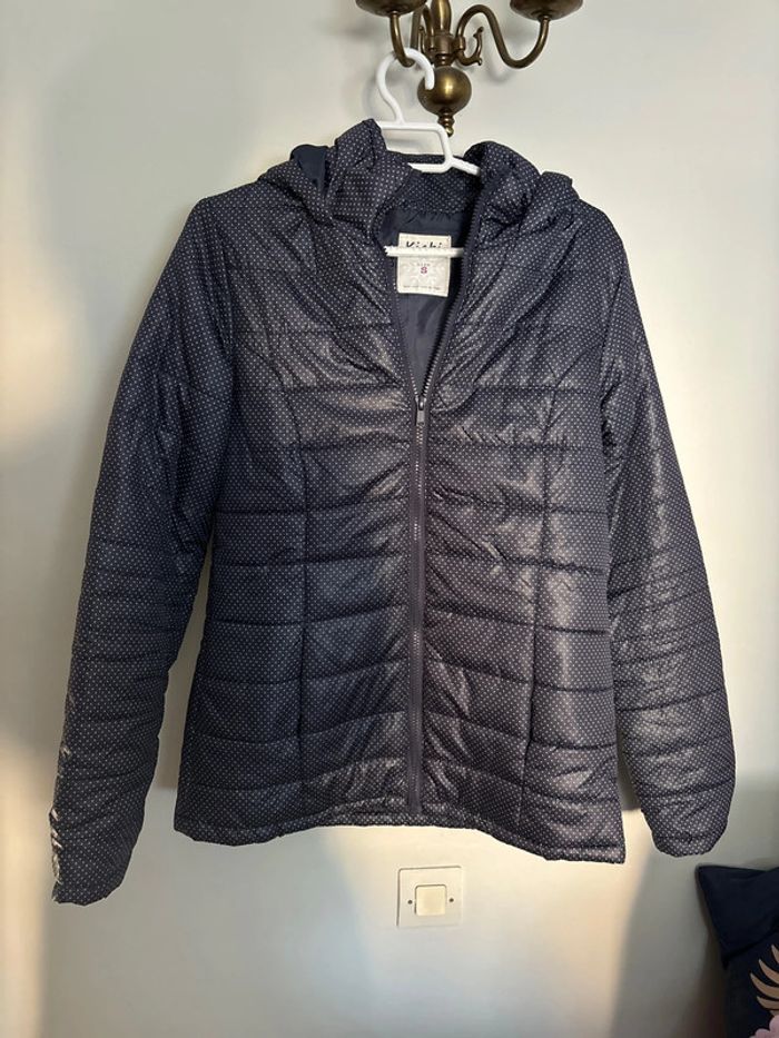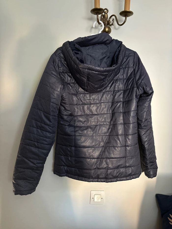 Doudoune bleu à poids blanc Poches latérales Capuche non amovible Très peu porté