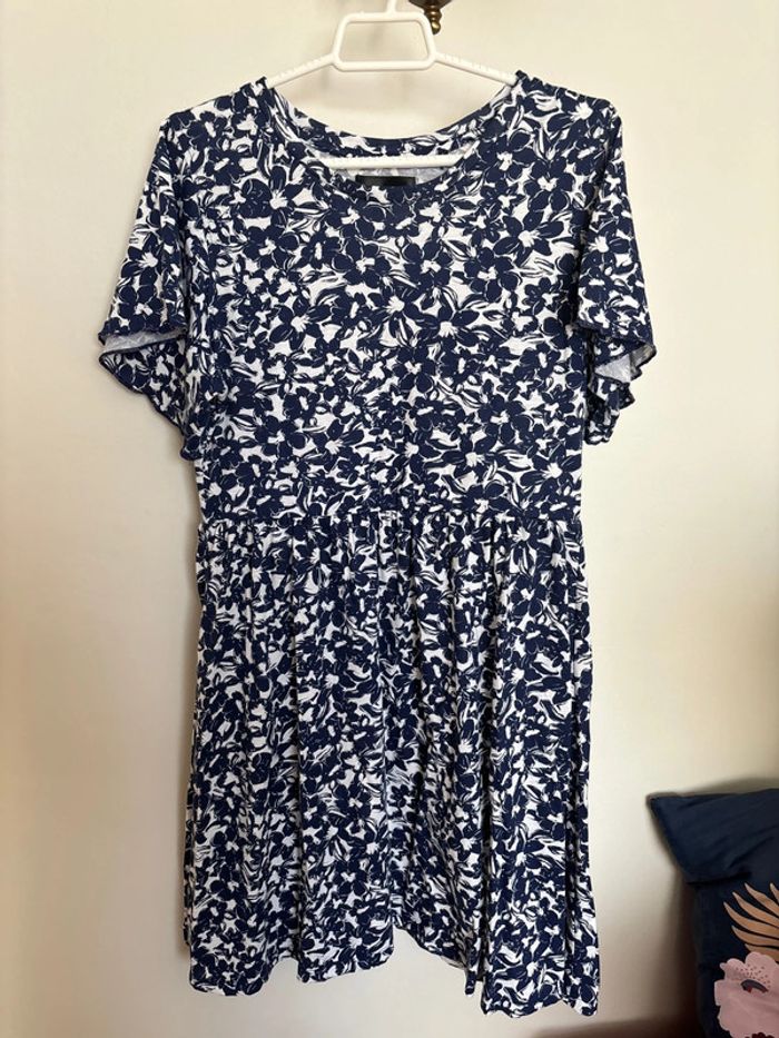 Robe courte à manches courtes Motif à fleurs bleues Jamais portée
