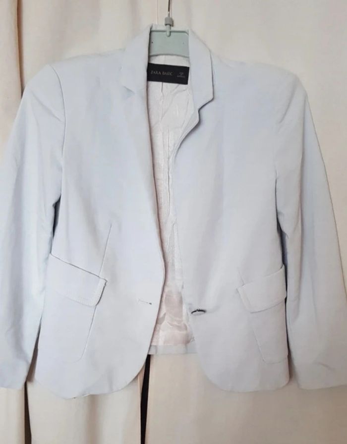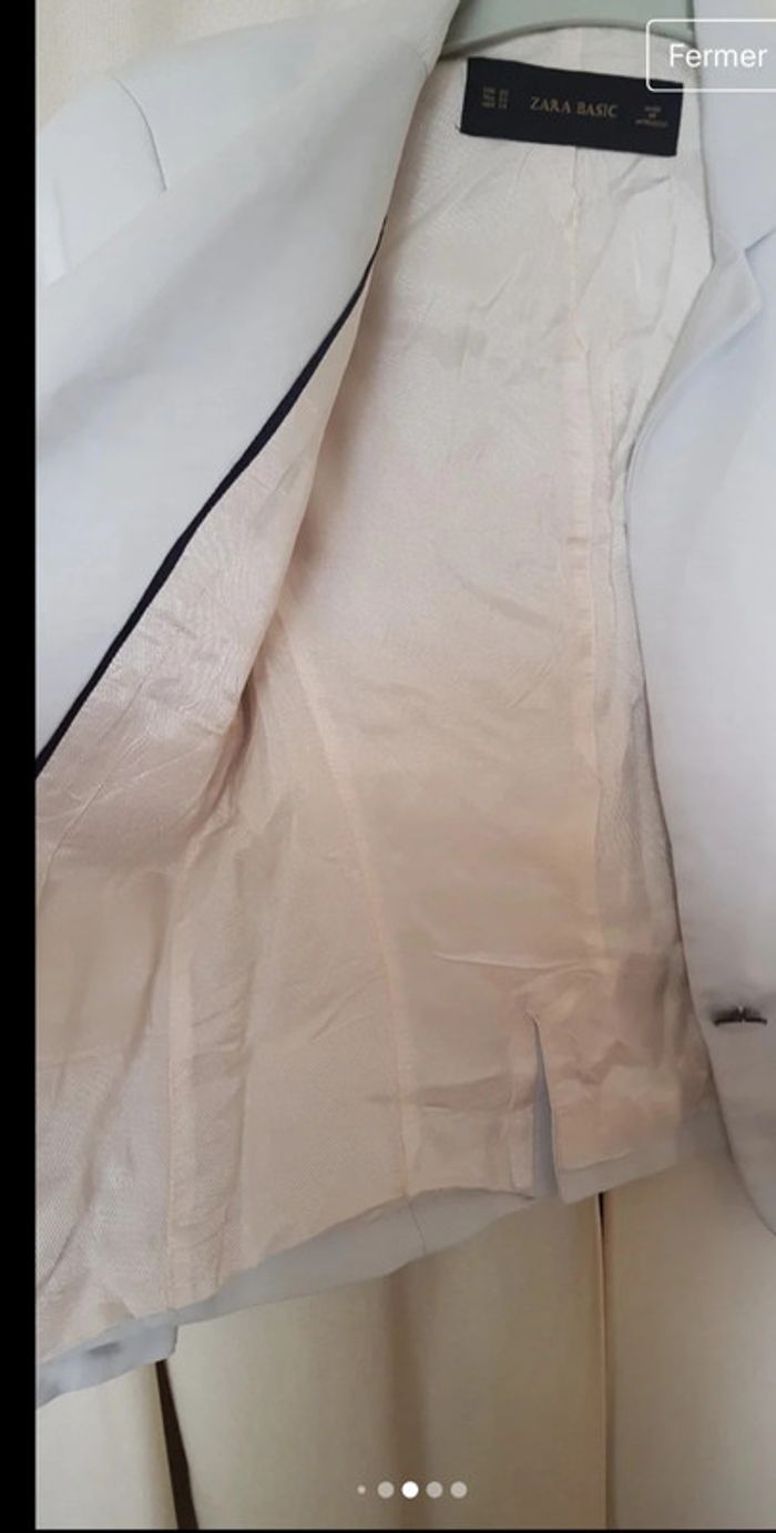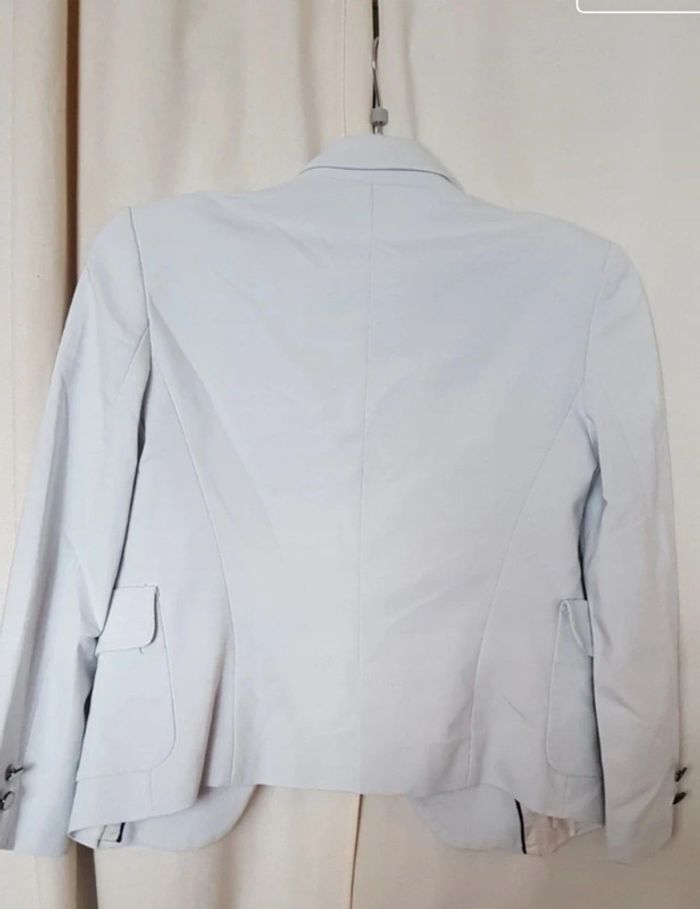 Fermeture par 1 bouton. 2 poches à l avant. 2 petits boutons sur bouts de manches. Doublure intérieure. Couleur exacte : vert d eau très clair Plus d étiquette matière Mesure aisselle à aisselle : 40 cm #sissimimi9134