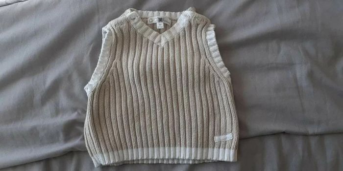 Pull sans manches col V Kitchoun 6 mois