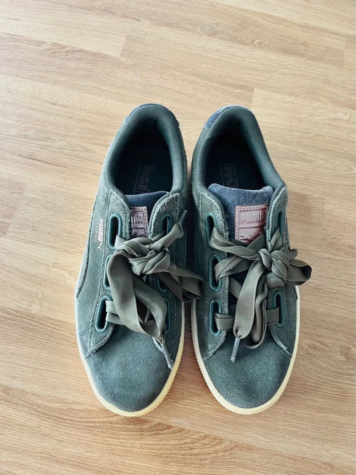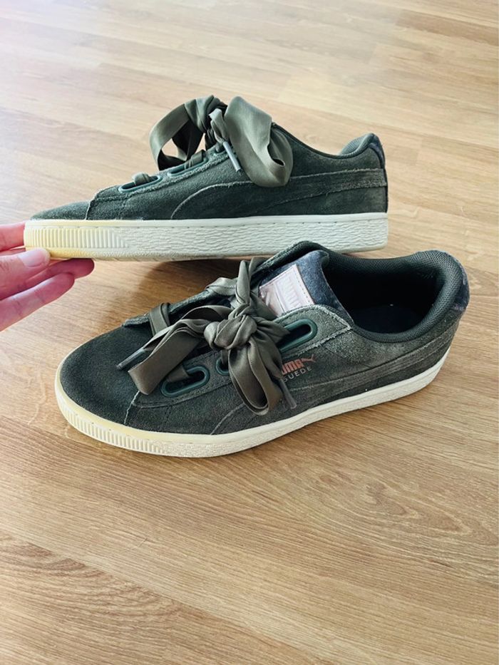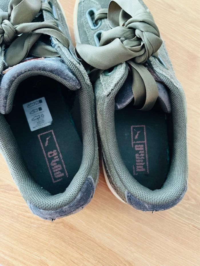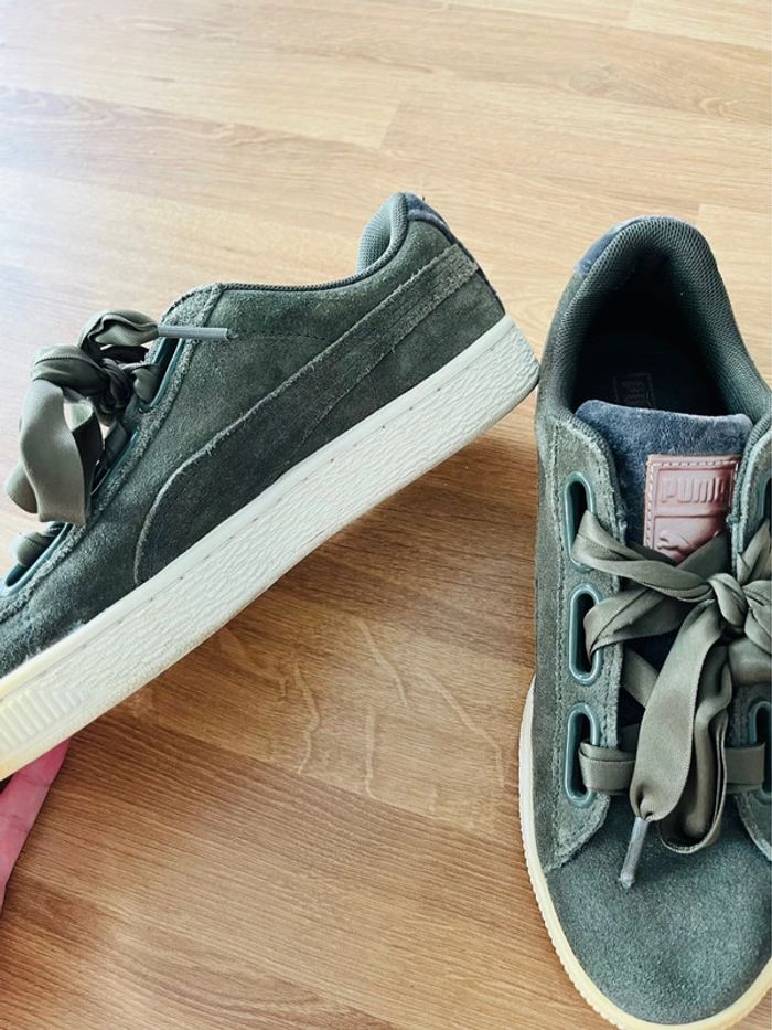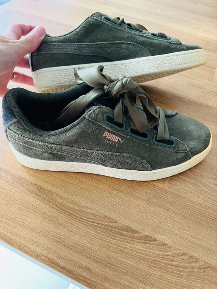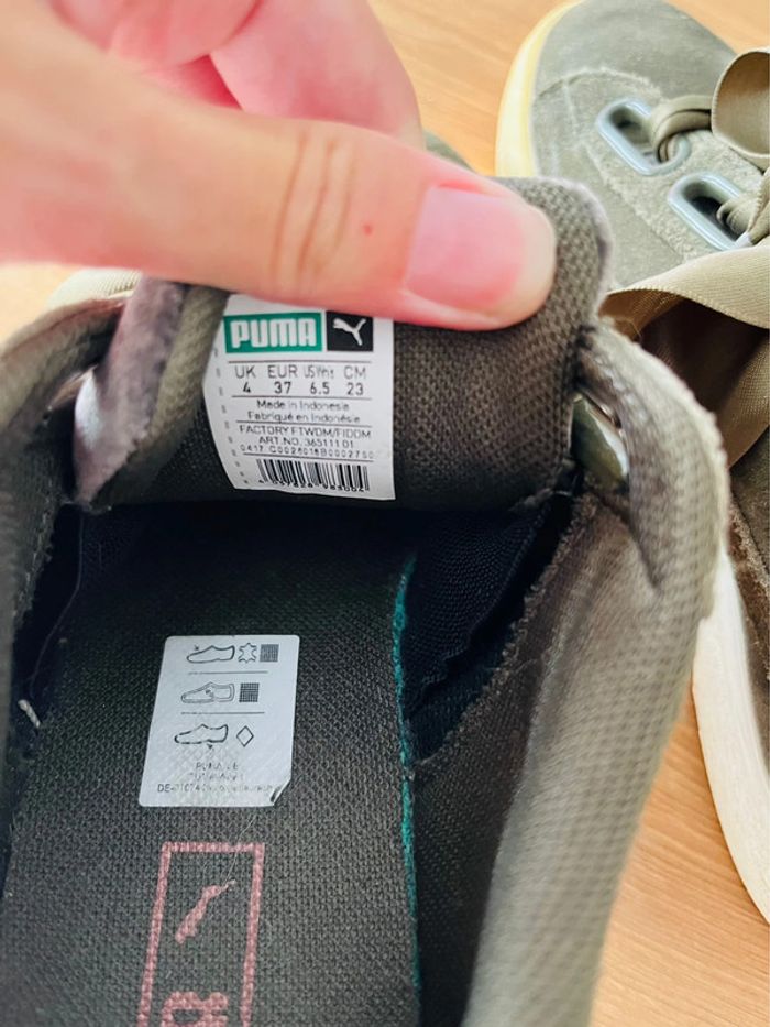 Basket puma En suédine kaki Pointure 37 En super état mise à part le bout qui a jauni