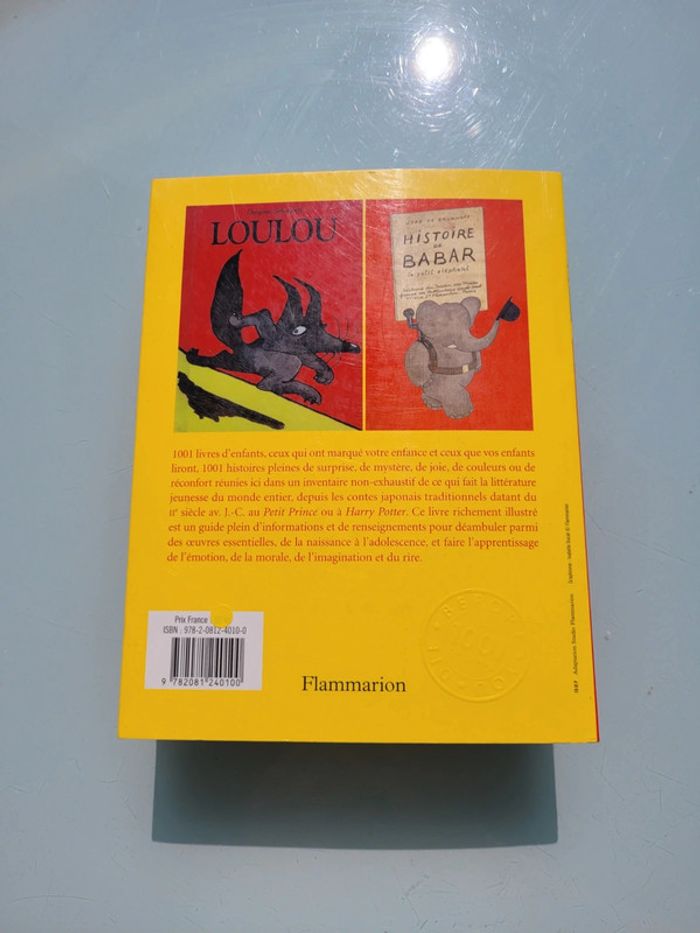 LES 1001 LIVRES D'ENFANTS QU'IL FAUT AVOIR LUS POUR GRANDIR 1001 livres d'enfants, ceux qui ont marqué votre enfance et ceux que vos enfants liront, 1001 histoires pleines de surprise, de mystère, de joie, de couleurs ou de réconfort réunies ici dans un inventaire non-exhaustif de ce qui fait la littérature jeunesse du monde entier, depuis les contes japonais traditionnels datant du IIe siècle av. J.-C. au "Petit Prince" ou à "Harry Potter". Ce livre richement illustré est un guide plein d'informations et de renseignements pour déambuler parmi des oeuvres essentielles, de la naissance à l'adolescence, et faire l'apprentissage de l'émotion, de la morale, de l'imagination et du rire. Reliure Broché Nombre de pages : 960 Poids : ‎1,9 Kilos Dimensions ‎16.1 x 5.4 x 20.9 cm Très bon état Mes autres livres enfants : #livreenfantmooglou