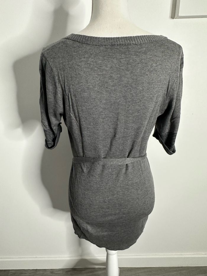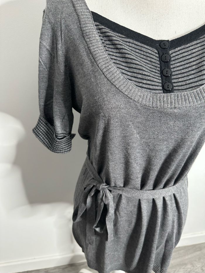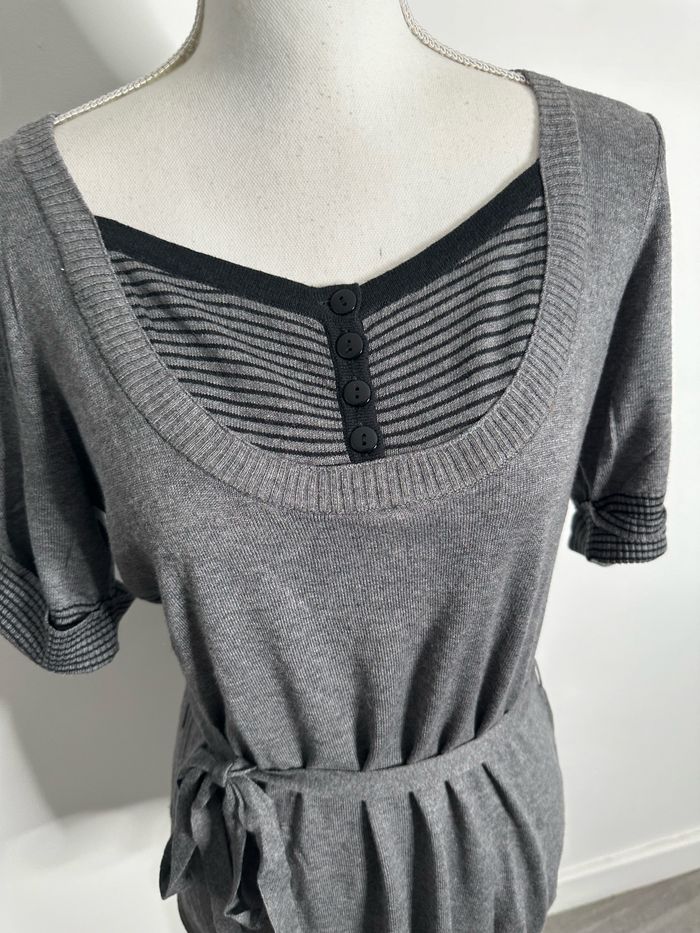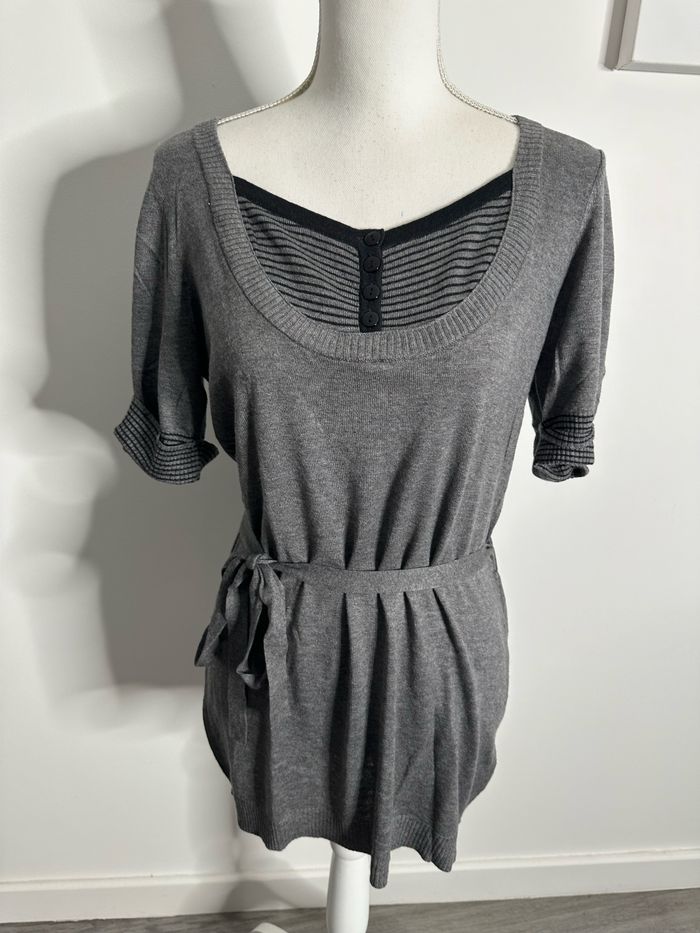 Tunique - Excellent état - Taille 40 équivalent L - Grise et noire - Manches courtes - Ceinture à la taille - Viscose, coton et polyamide