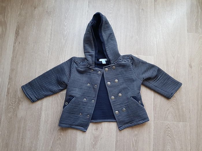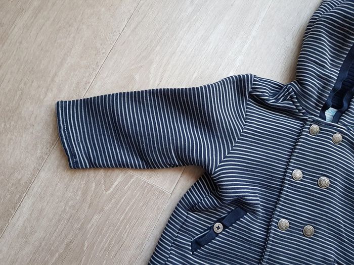 Bonjour Je vends ce gilet bleu marine foncé a rayures blanches, fermeture par bouton pression. Marque obaibi taille 23 mois (86 cm) #vlorent69_Bébé #vlorent69_Garçon #vlorent69_24mois