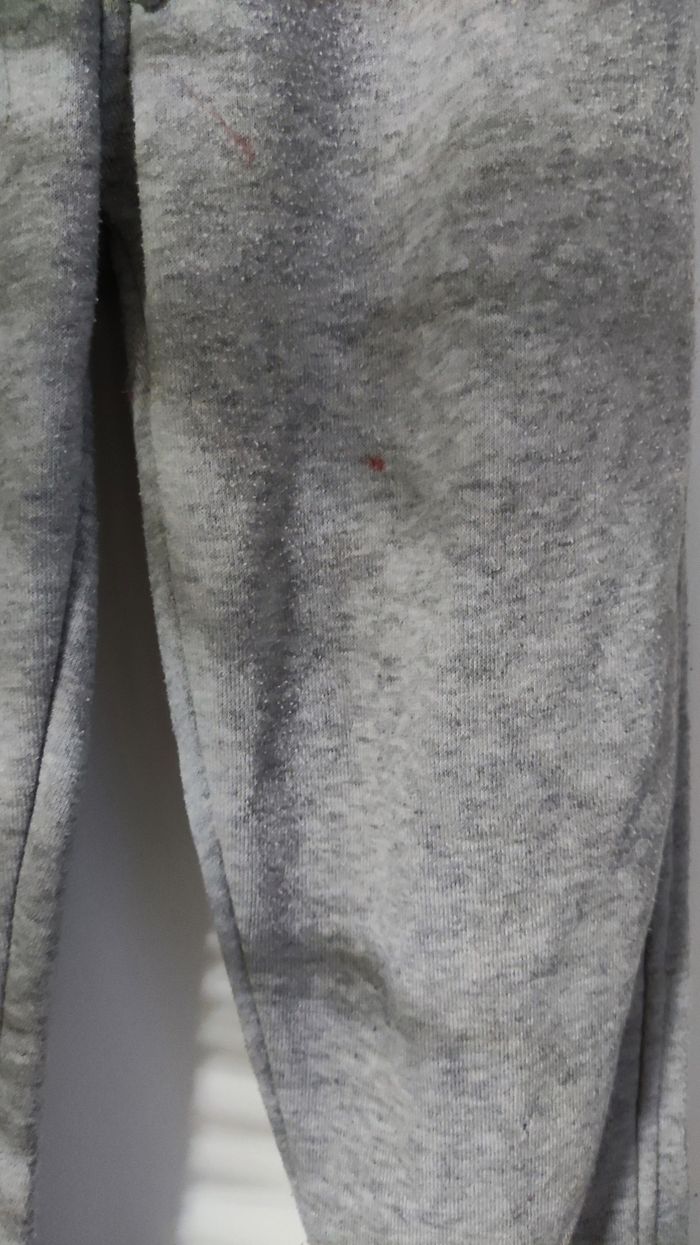 Bonjour 😊 Pantalon de sport Enfant 6 ans Ficelle de serrage a la taille Un point de couture à faire Comporte une tâche voir les deux dernières photos.