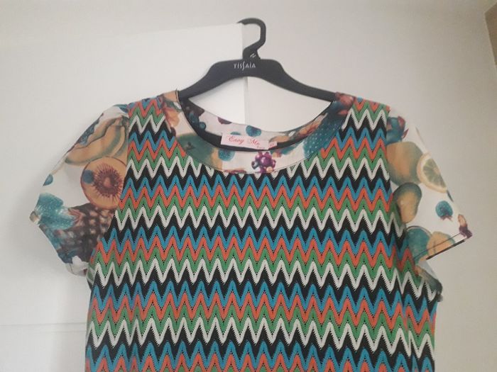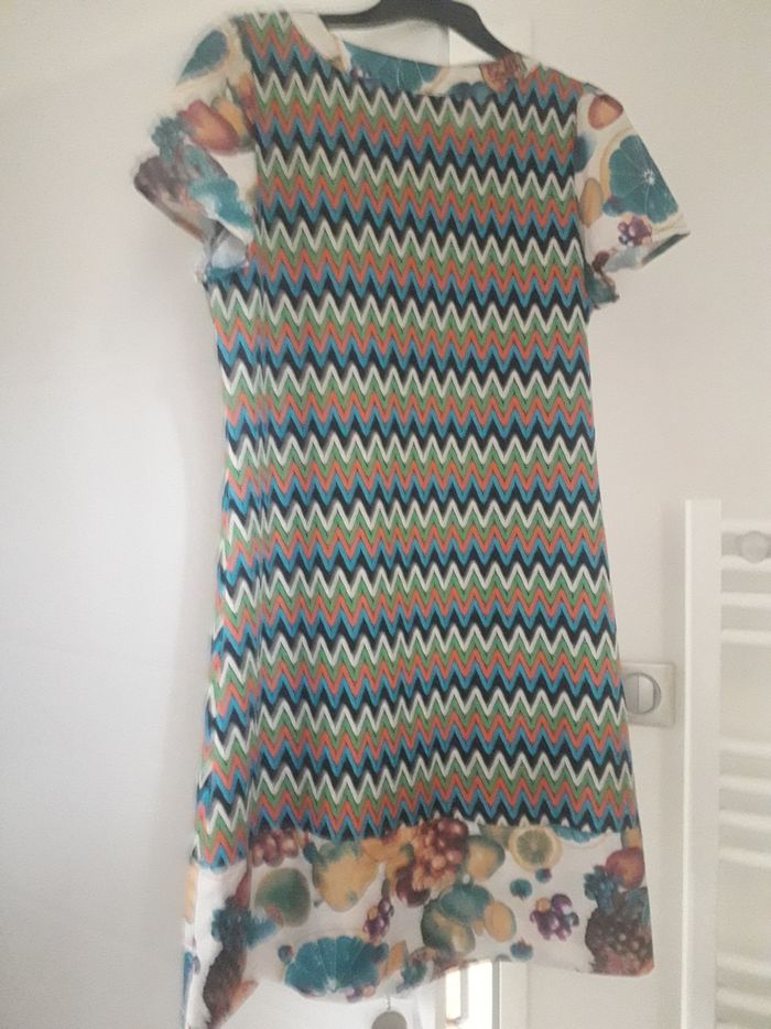 robe multicolore entièrement doublée manches courtes manches et bas de la robe effet satiné et imprimé très bon état