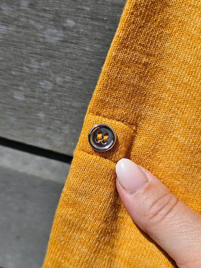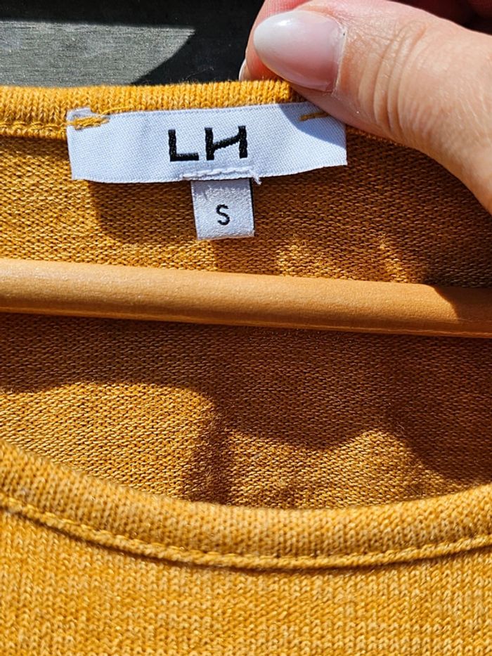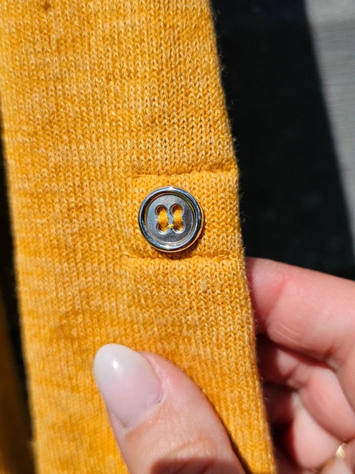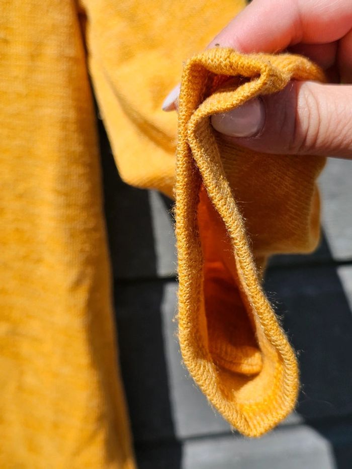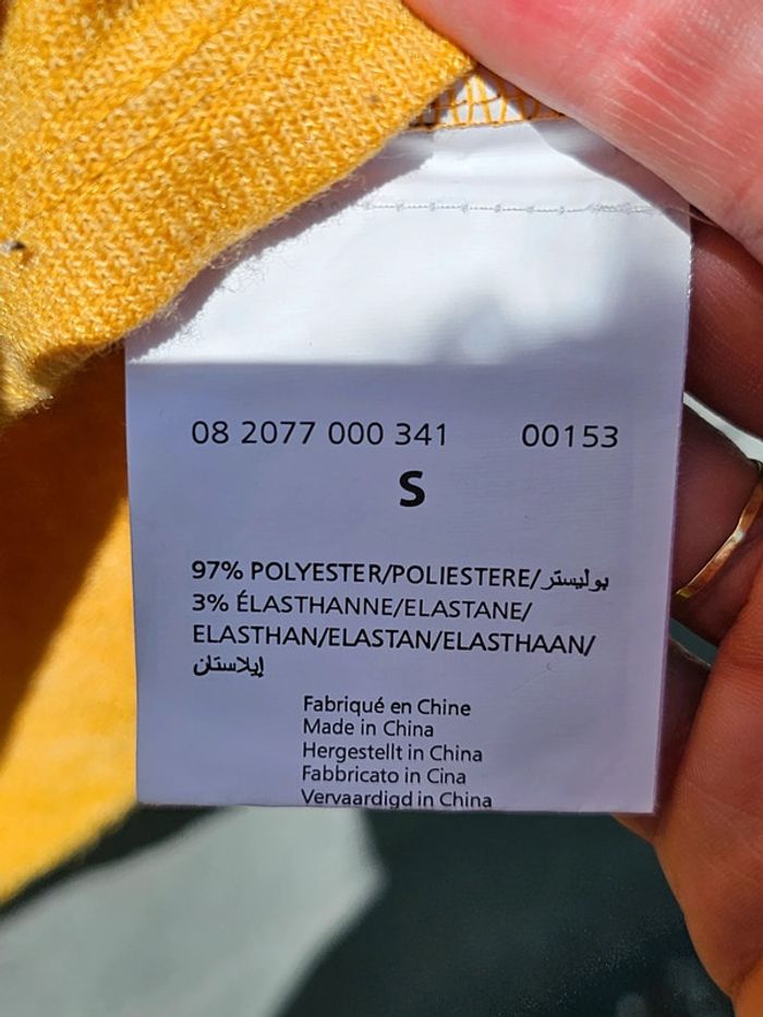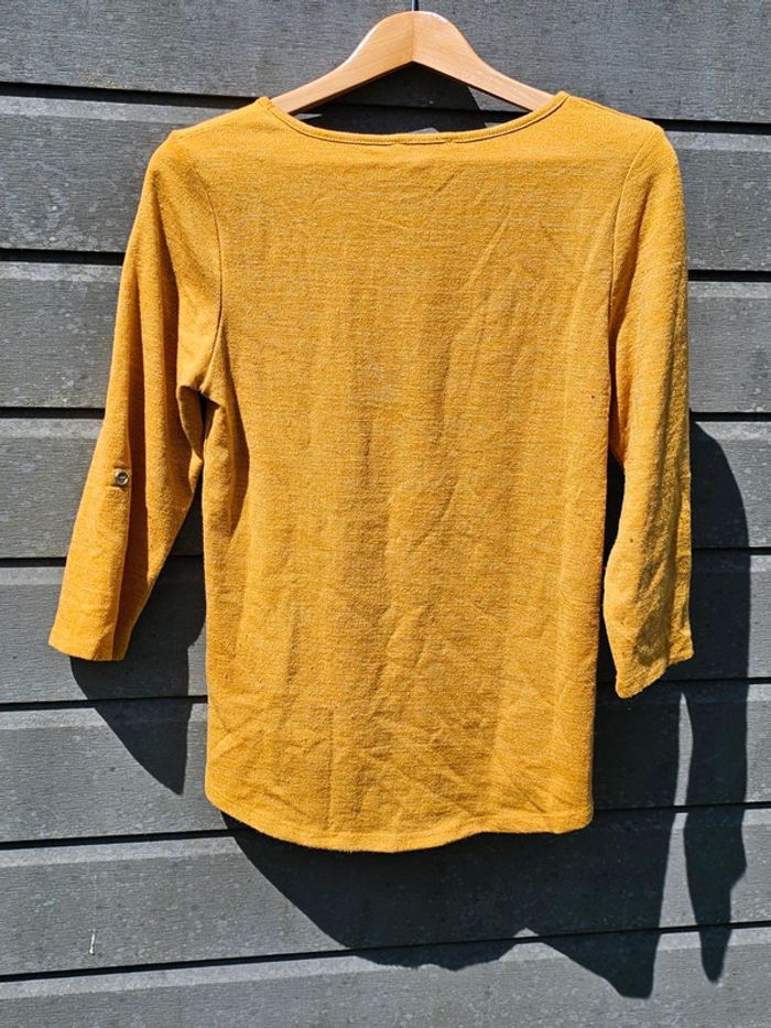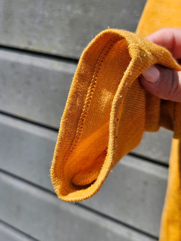 Neuf sans étiquettes 🏷 (étiquette antivol presente) Couleur moutarde Longueur totale 65cm Largeur d'aisselles à aisselles 4rcm Largeur d'épaules à épaules 38cm Longueur manches en partant des épaules 46cm Matière 97% polyester 3% elasthanne