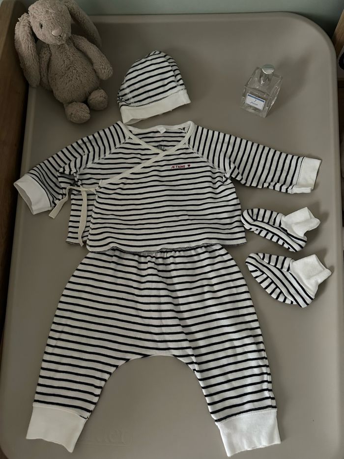 Ensemble petit bateau + bonnet + moufles marinière - photo numéro 1