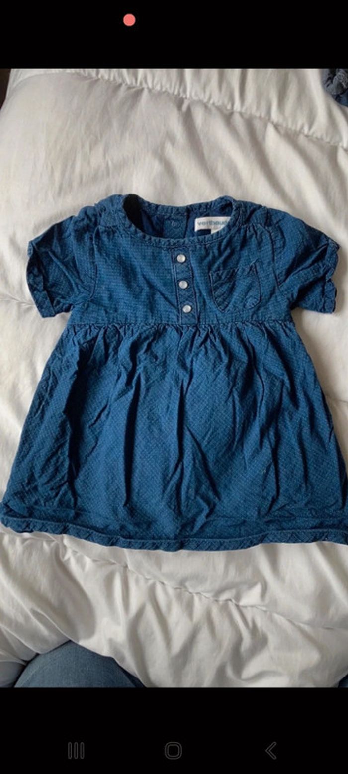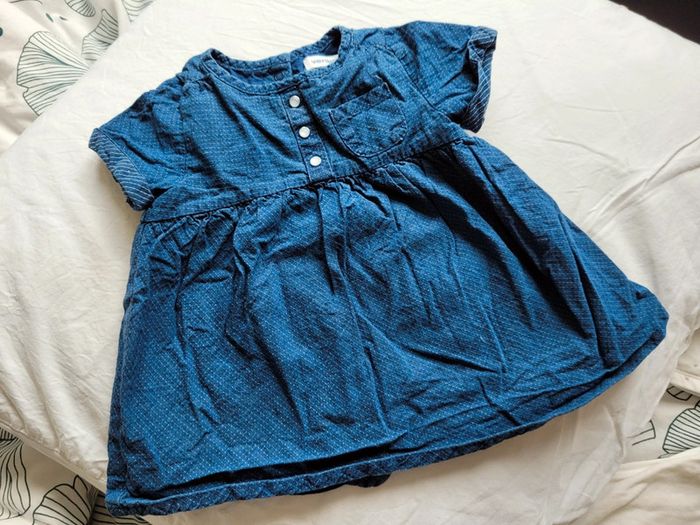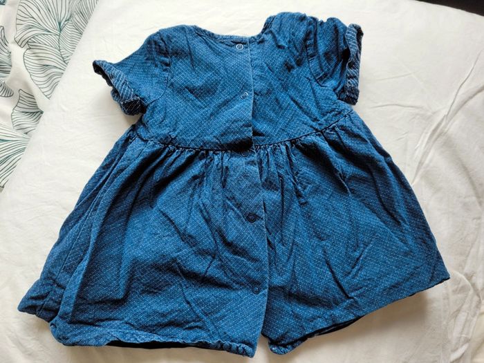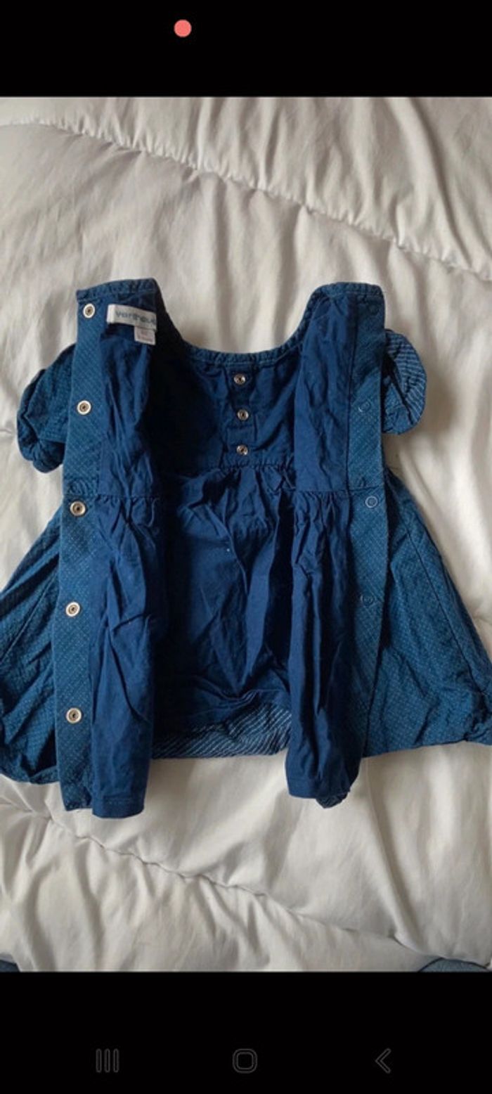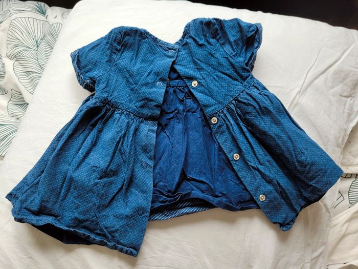 Robe Vertbaudet bleu marine manches courtes. Doublée à l’intérieur, donc idéal mi-saison. S’ouvre entièrement à l’arrière(pressions). Très bon état. #T3_6mois_baptlily