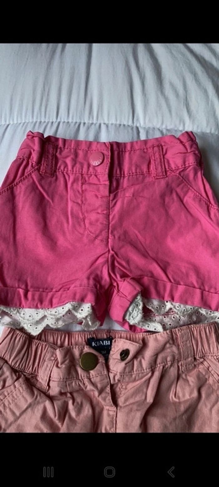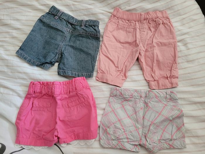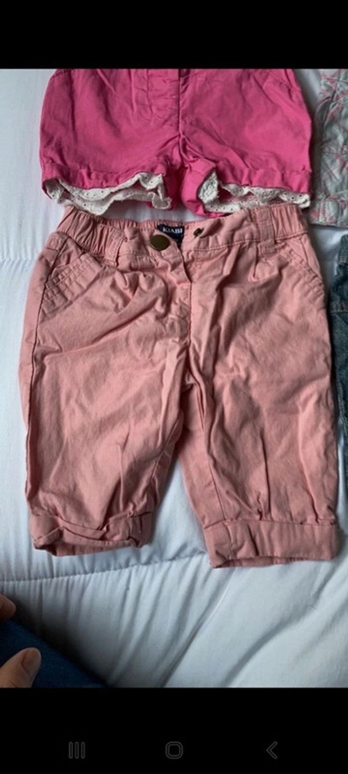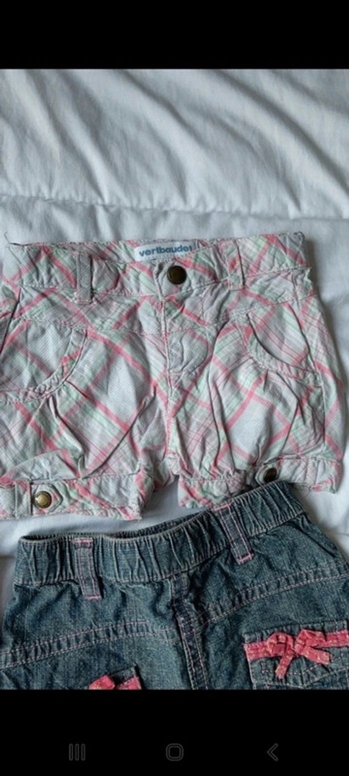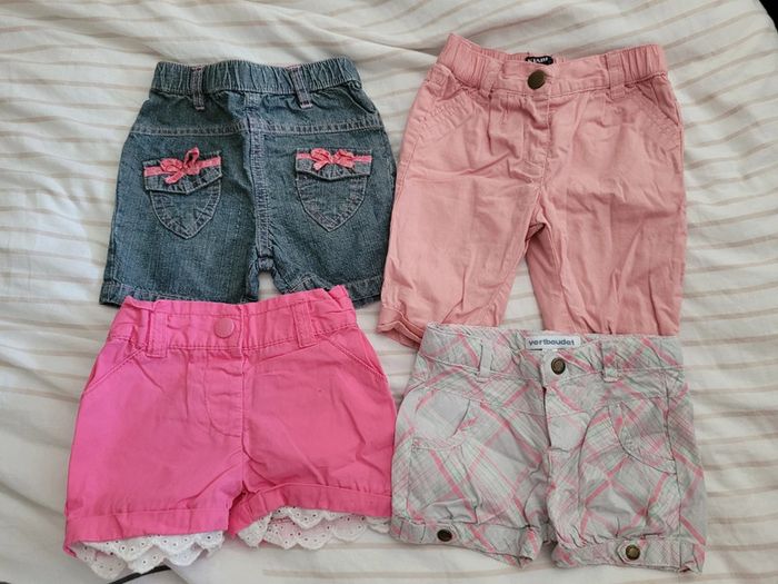 Quatre bas été fille, taille 3 mois - 3 shorts : rose de marque Kiabi, Jean effet denim marque Vertbaudet, rose et gris de marque Vertbaudet - 1 pantacourt rose, marque Kiabi. Très bon état général. Ils s'ouvrent par l'avant grâce à un bouton pression sauf le short en jean bleu qui s'enfile directement. Le lot peut-être défait. #T3_6mois_baptlily