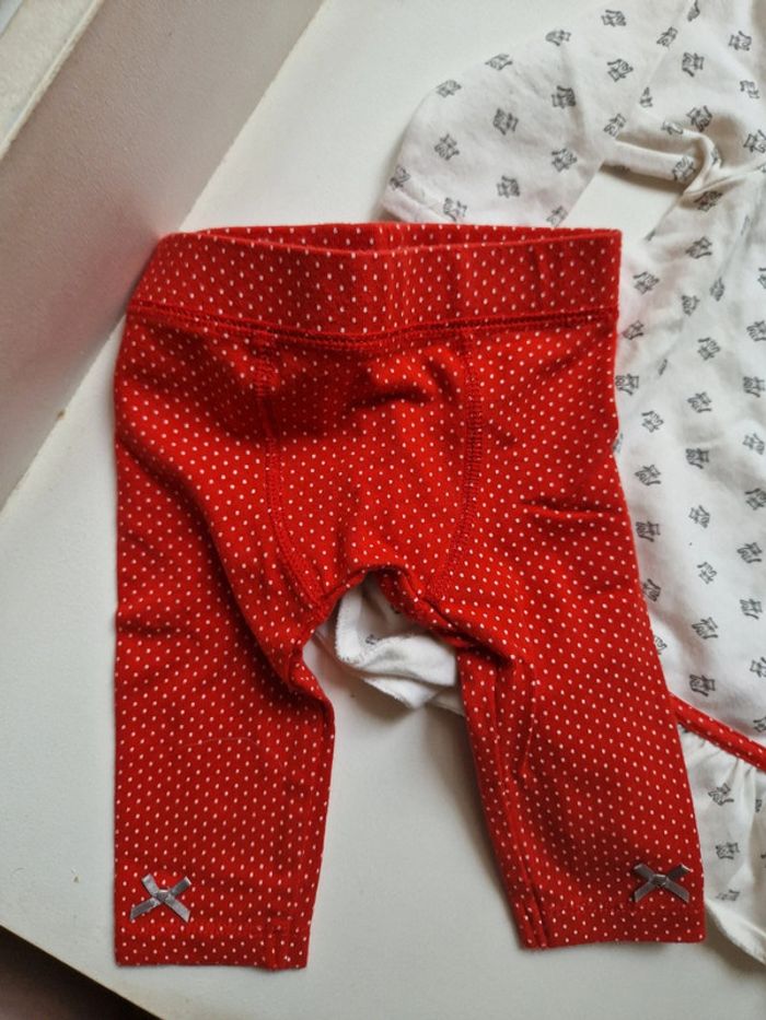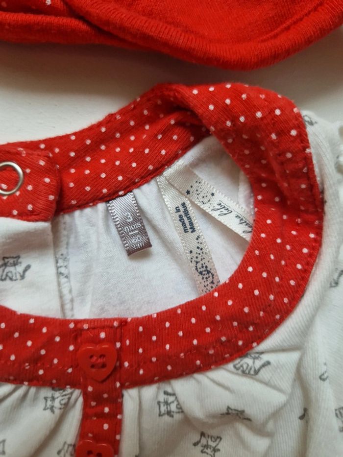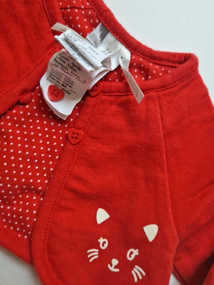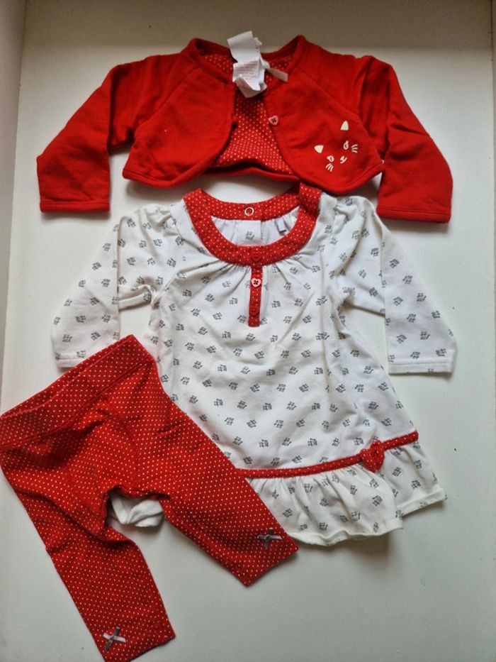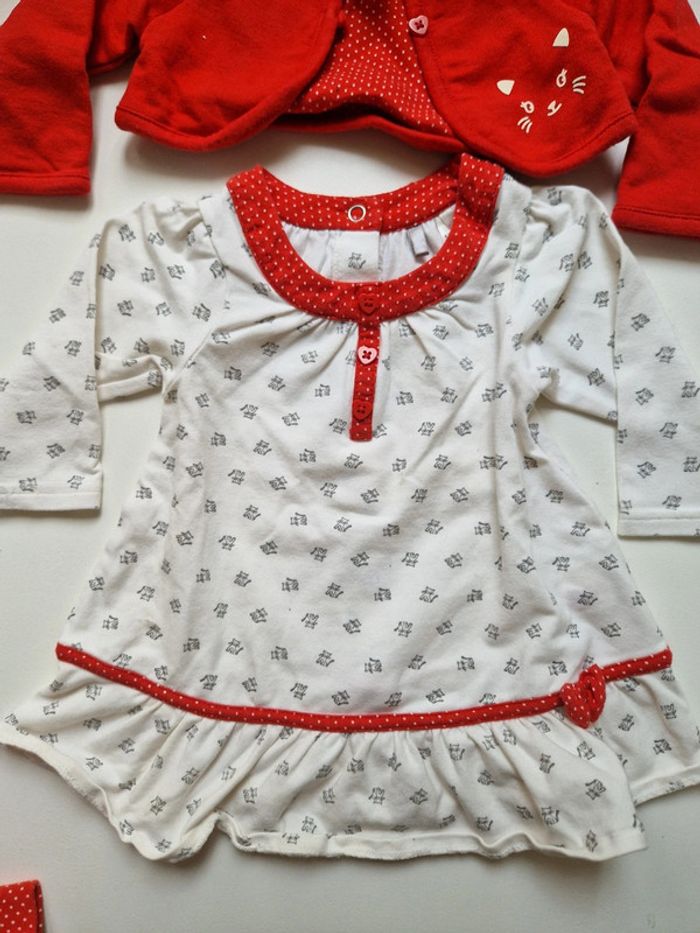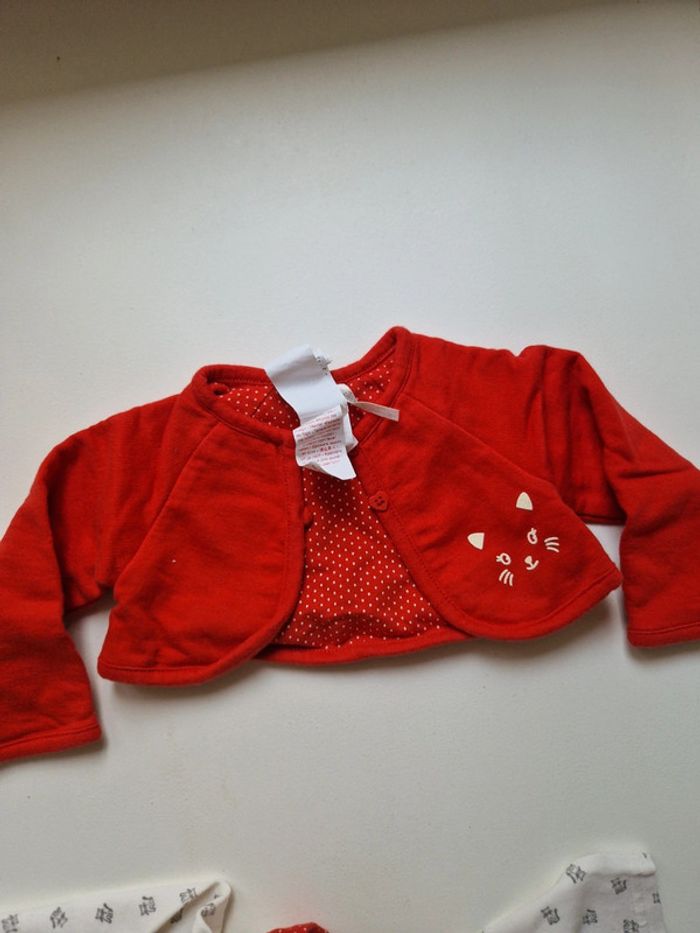 Ensemble avec robe+boléro+legging rouges et blanc avec chat Orchestra taille 3 mois Porte 1 fois pour une occasion #luciecdz093mois