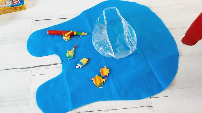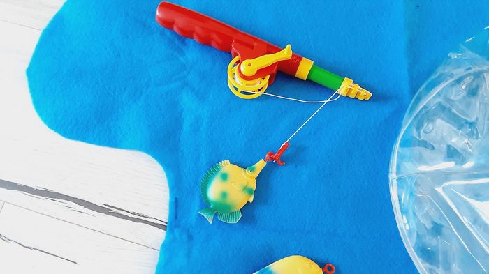 Jeu jouet pêche à la ligne avec tapis bleu petit bassin une canne à pêche et 4 poissons - photo numéro 1