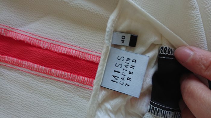 Haut, top femme miss captain, motifs linéaires noir, corail, blanc, taille 40 - photo numéro 3