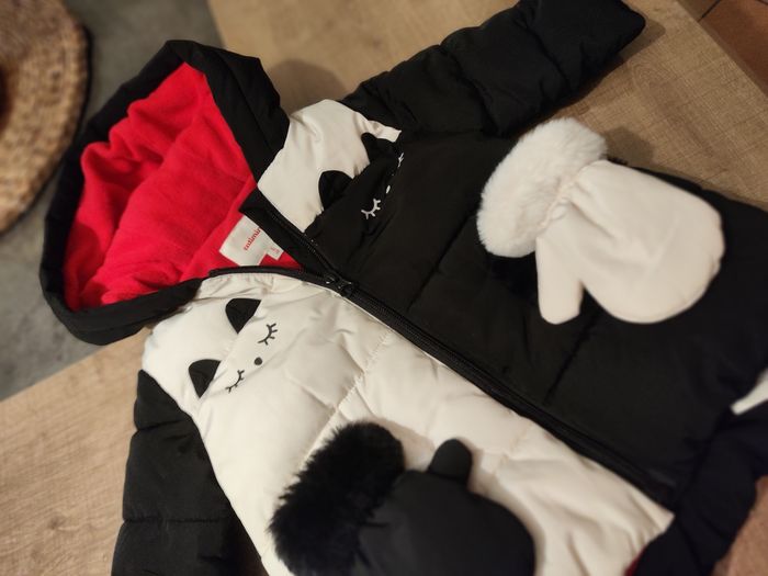 Bonjour, vend doudoune fille Catimini Noir et blanche Très bon état Taille 6 mois Les moufles se decollents pour faire de vrai moufles
