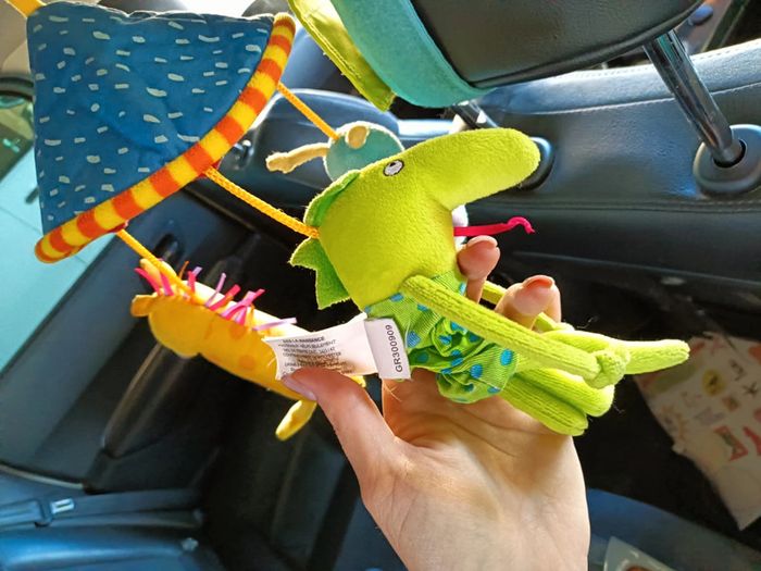 Un qui vibre quand on tire dessus, un avec son (doux) à l'intérieur et l'autre je ne sais plus lol je crois bruitages papier froissé à l'intérieur