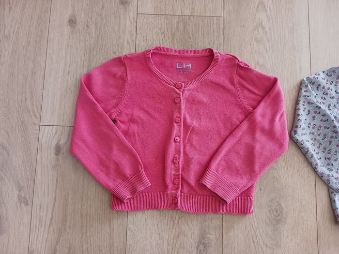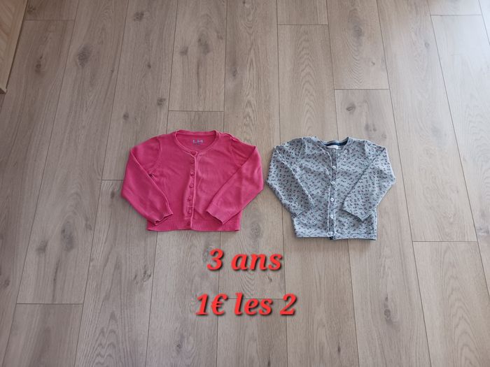 Lot de 2 gilets taille 3 ans, bon état. Le rose est un peu délavé et le gris a une tâche sur le coude. 1€ les 2