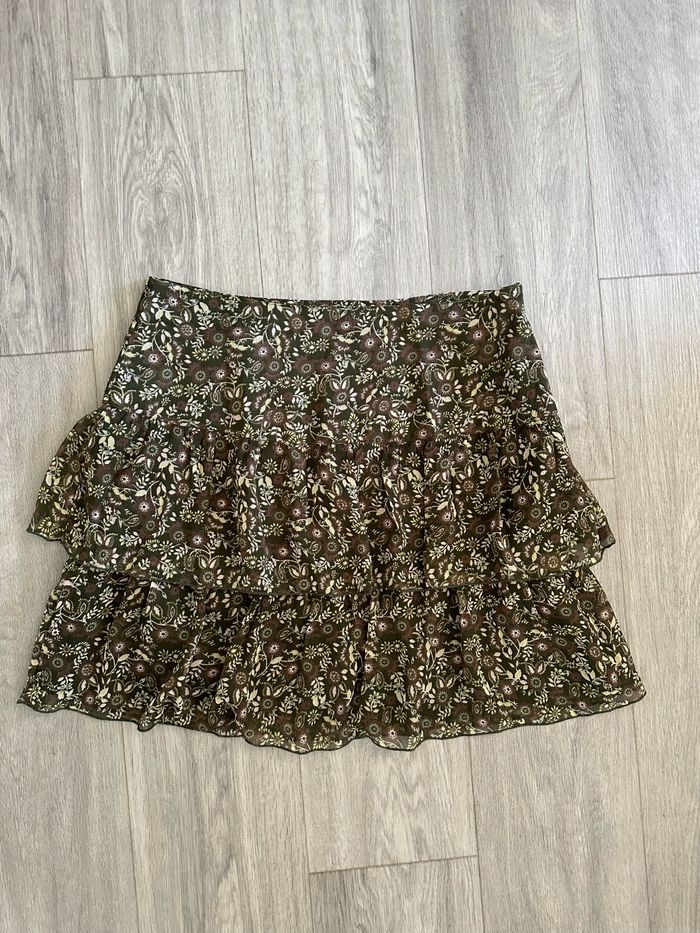 Jupe à volants - Excellent état - Taille 42 équivalent XL - Kaki et marron - Zip sur le côté - Doublure intérieure - Blancheporte - Plus d’étiquette de matière Dimensions: - 42 à 44cm à la taille - 50cm de long