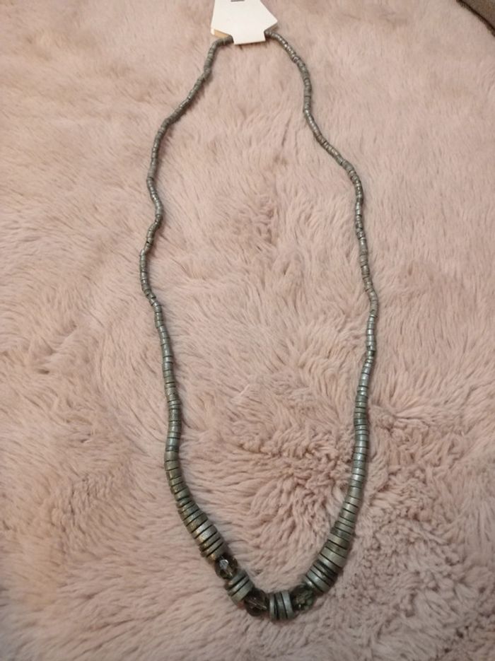 Long collier sautoir en perles en bois argenté et plastique #nanoukou_accessoire