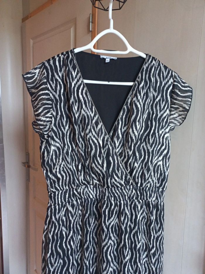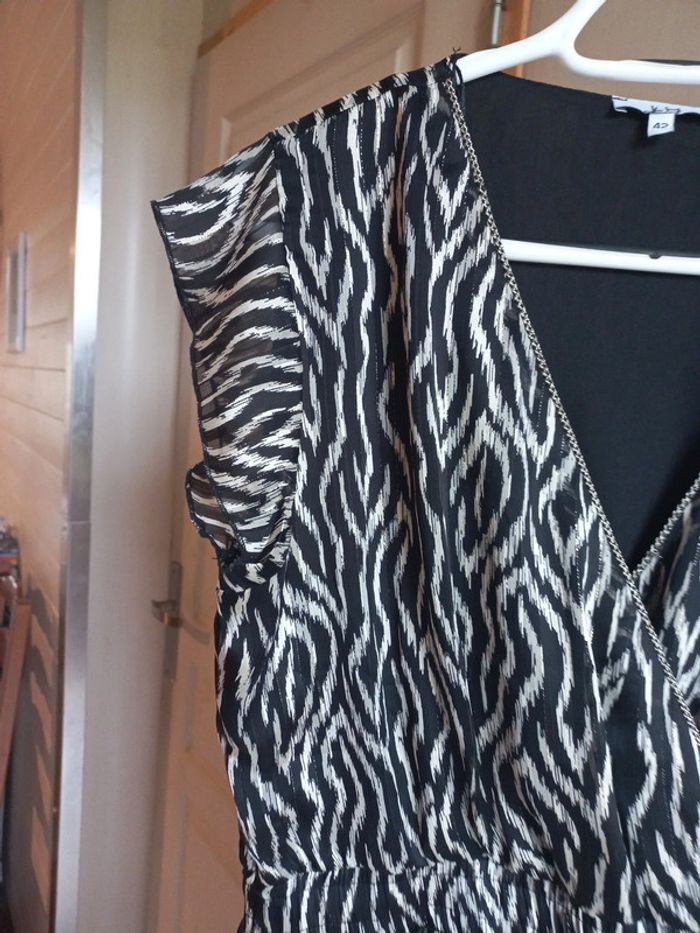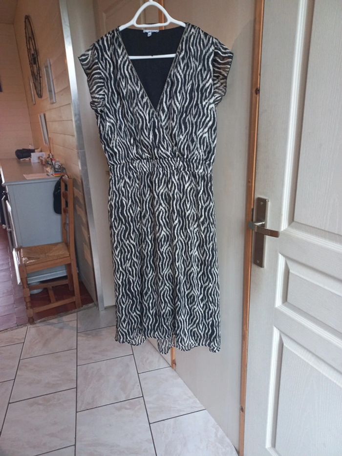 Robe mi longue Noire imprimée Beige Files dorés Taille 42 La halle