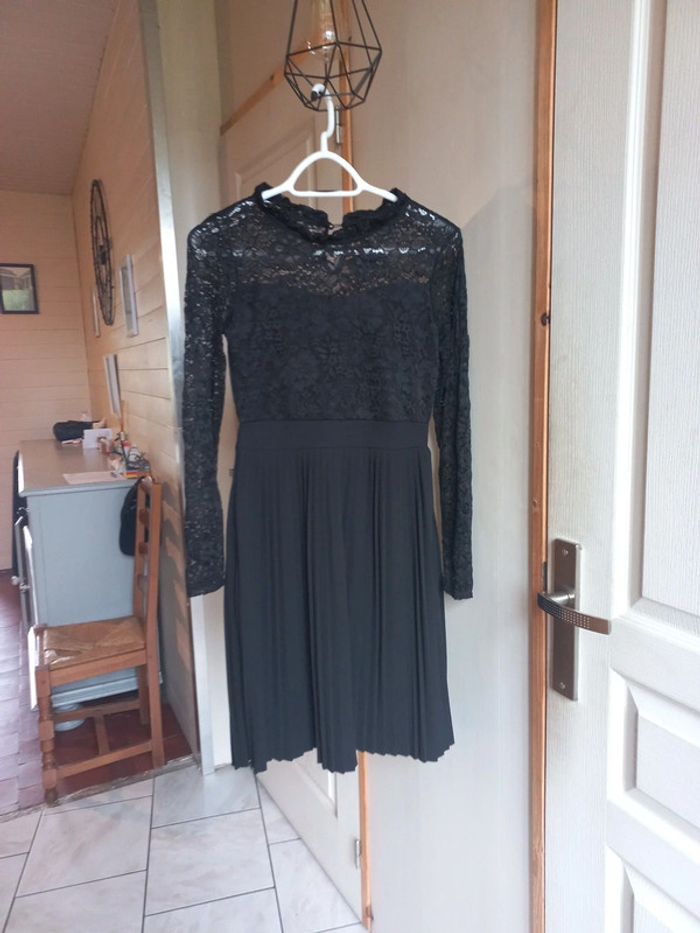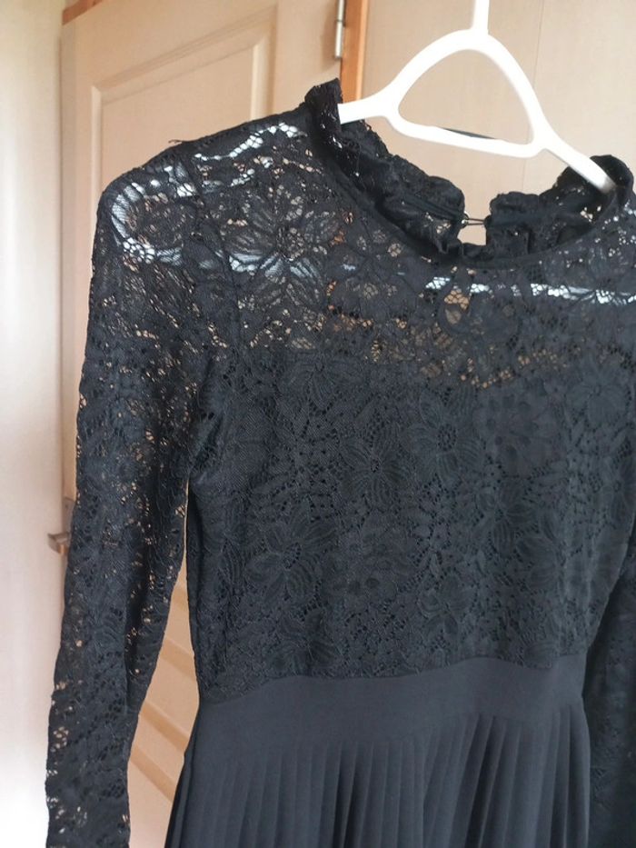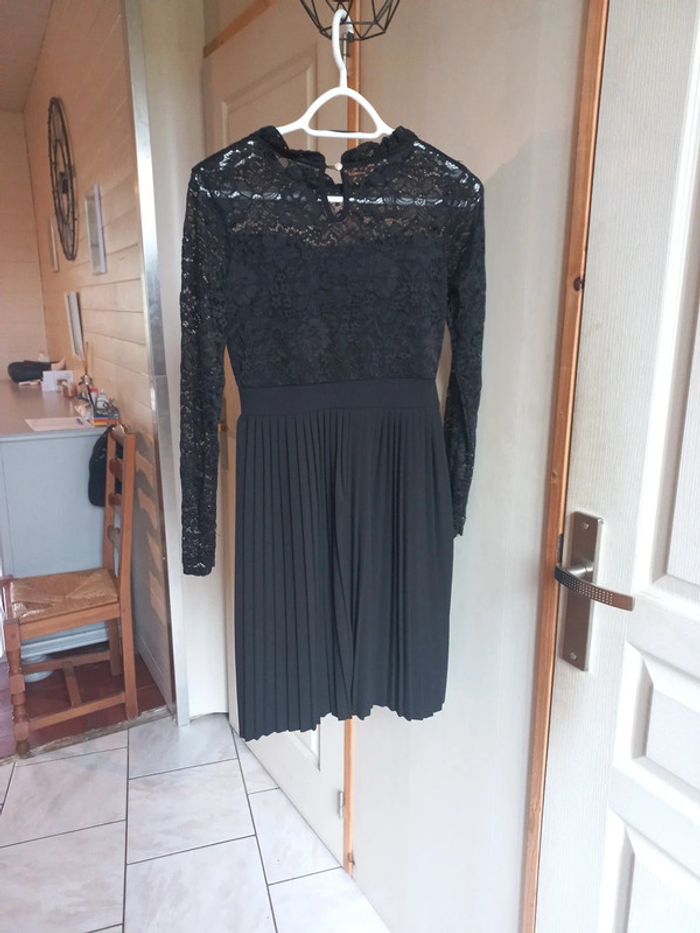 Robe noire Manches longues dentelle Jupe plissée Taille S