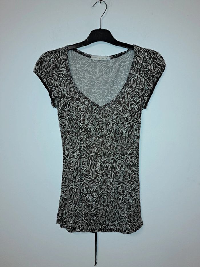 Tee-shirt Cache Cache en très bon état. Taille 1. Lien à l'arrière. 92% coton et 8% elasthane #femme36celine14