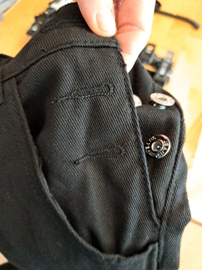 Salopette Ge Lai Mei jeans neuve avec étiquette. Attention les ouvertures de boutons sur les côtés sont cousues. Taille s. Troué sur les genoux