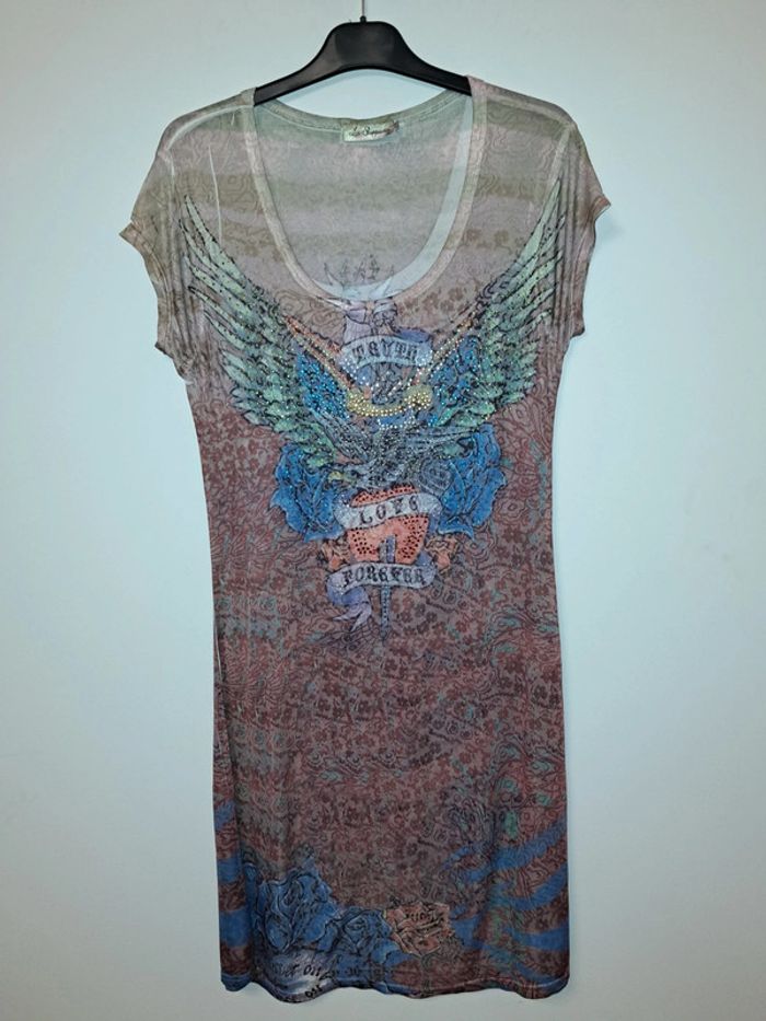 Robe Les Shoppeuses en très bon état. Avec strass. Longueur 103. Taille m. Légèrement transparente