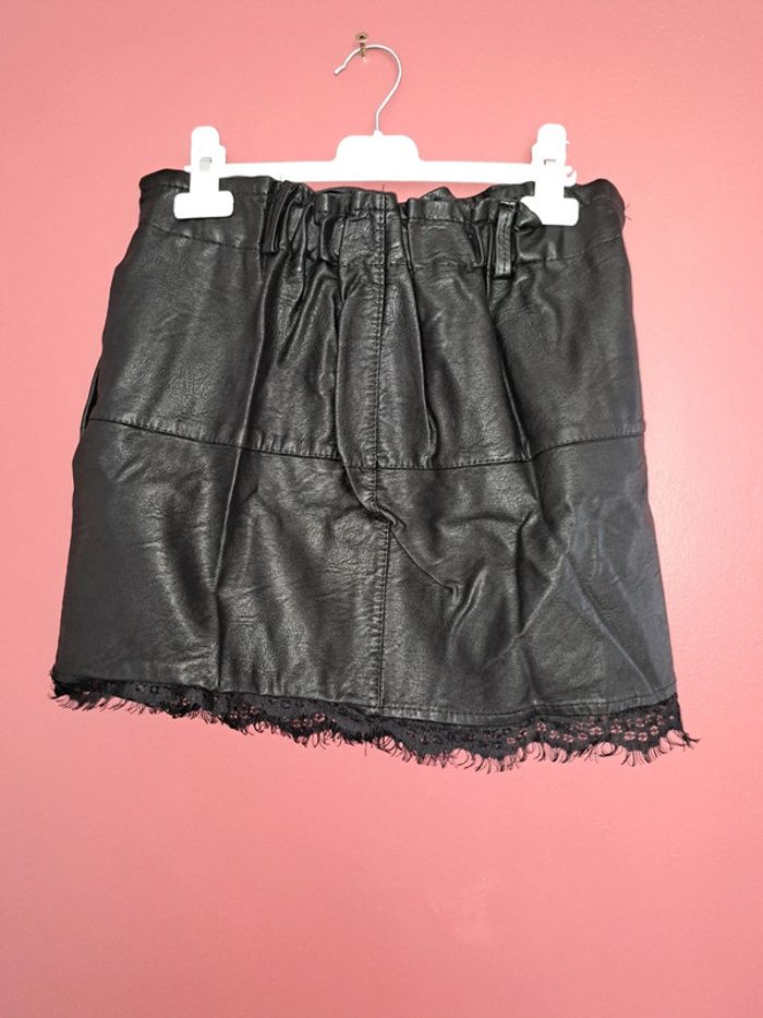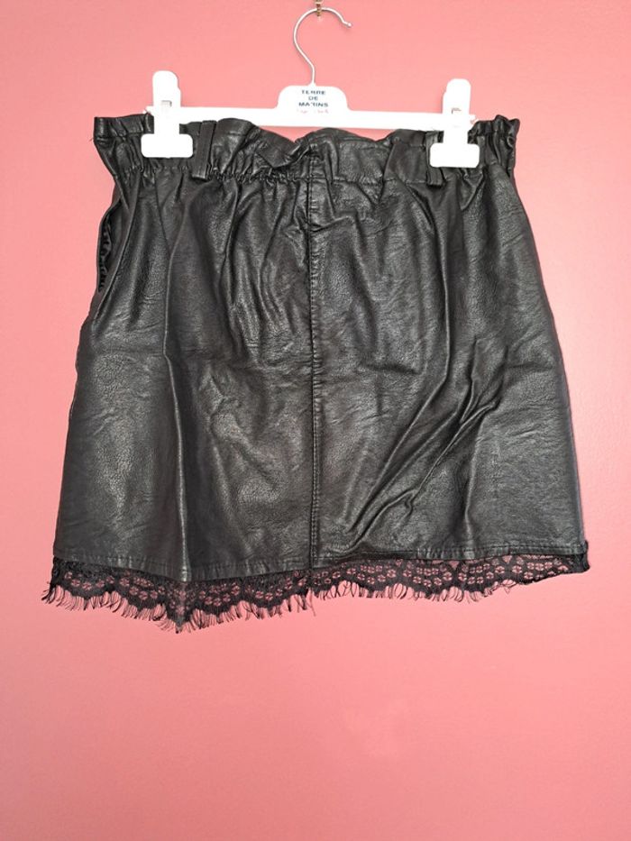 Jupe boutique indépendante en très bon état. Longueur 40 cm. Avec poche et taille élastique. Simili cuir