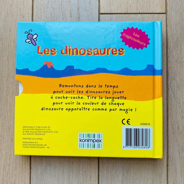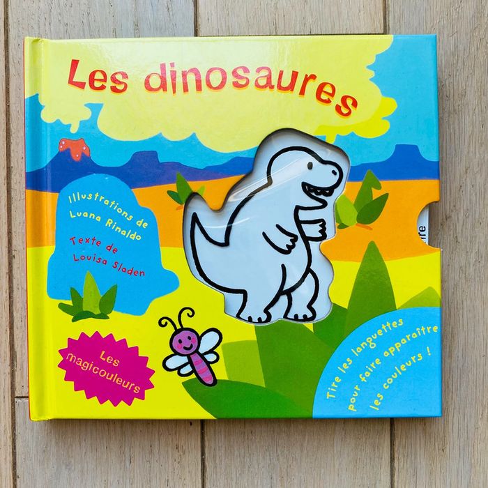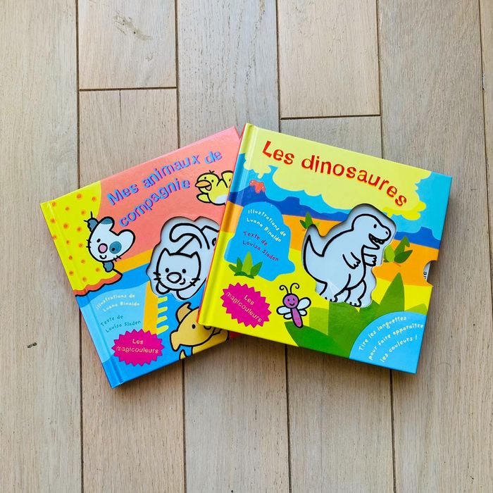 lot de 2 livres : 1 sur les dinosaures et 1 sur les animaux de compagnie livre idéal pour jouer et apprendre les couleurs avec les enfants sur chaque page il va devoir deviner la couleur de l’animal jeux ludiques état : neuf