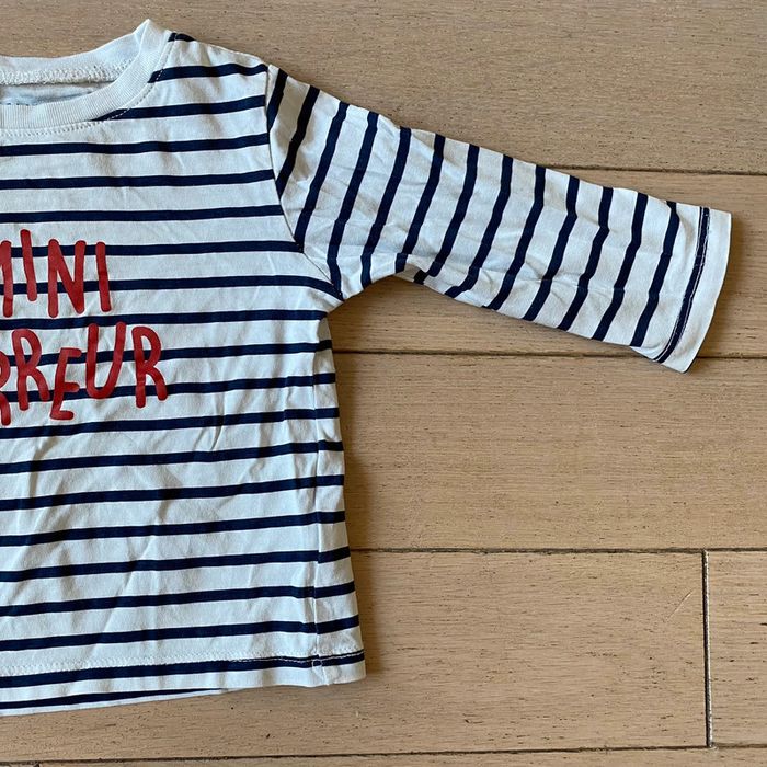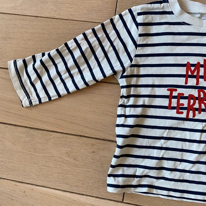 ensemble 2 pieces comprenant un haut a manches longues et son pantalon (ajustable au niveau de la taille) taille: 12 mois marque : kiabi pantalon en excellent état porté 2 fois le haut porté en bon état pas de tache (E3)