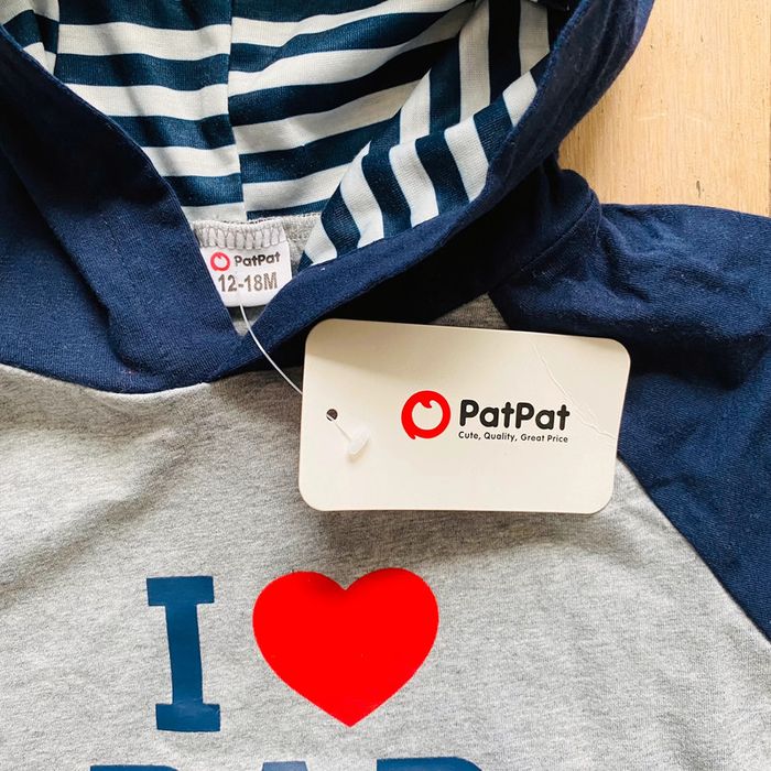 ensemble 1 pièce avec capuche inscription « I ❤️ DAD » taille : 12-18 mois marque : PatPat état : neuf avec étiquette (Y6)