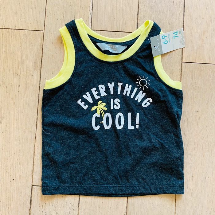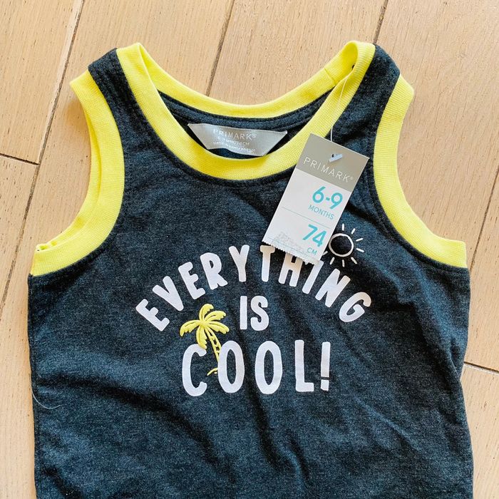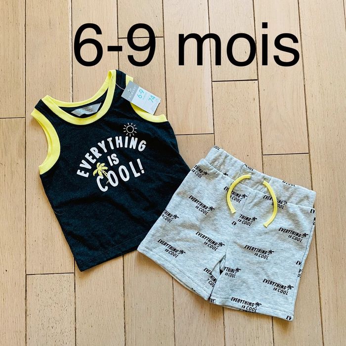 ensemble 2 pièces qui comprend : 1 teeshirt + 1 short état : neuf avec étiquette taille : 6-9 mois marque : primark (AB4)