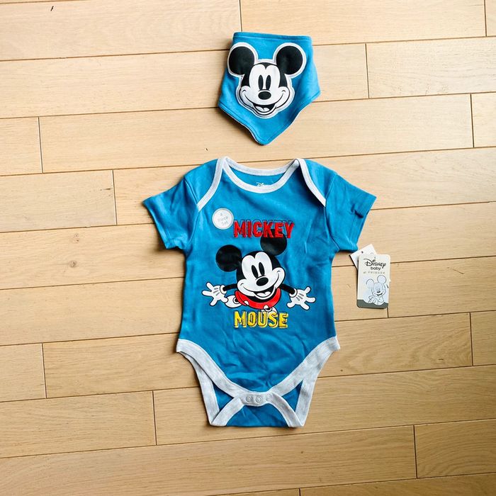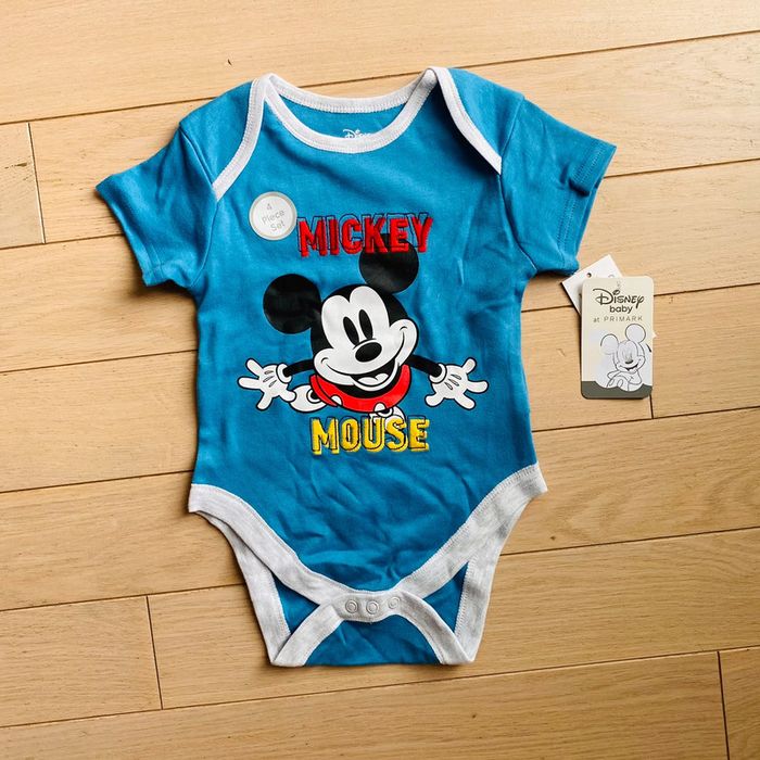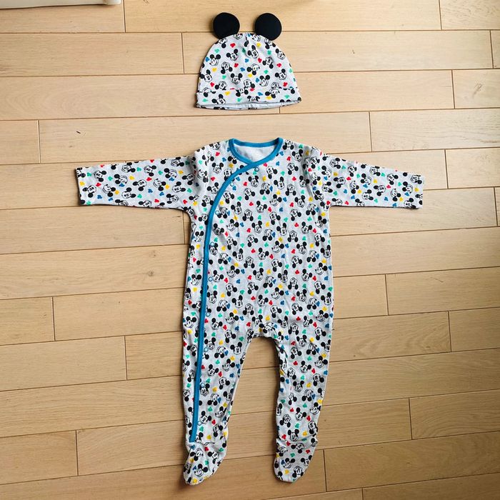 Ensemble 4 pieces Disney motif Mickey comprend : 1 bodie + 1 bavoir + 1 pyjama + 1 bonnet état : neuf avec étiquette marque : Disney par primark taille : 12-18 mois (N7)