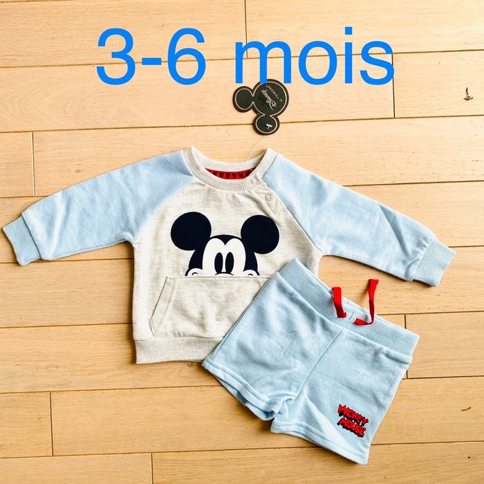 Ensemble 2 pieces Disney motif Mickey comprend : 1 pull et son short état : neuf avec étiquette marque : Disney par primark taille : 3-6 mois (N4)
