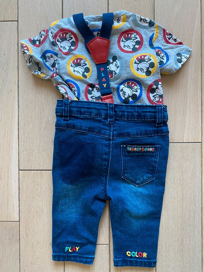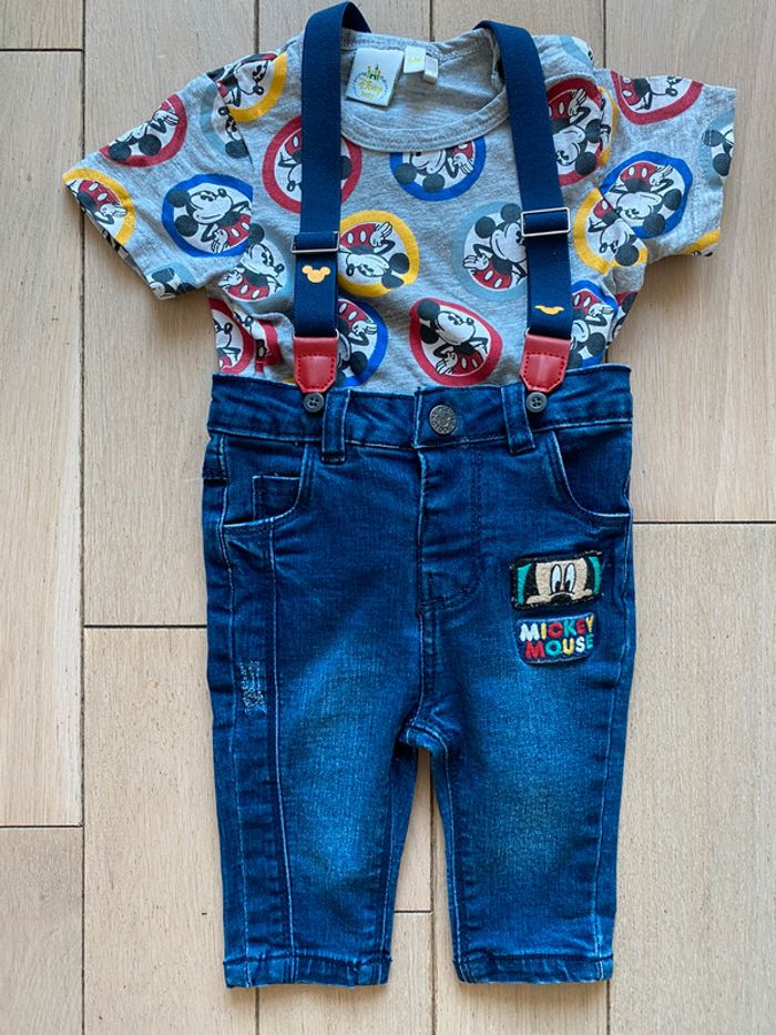 ensemble 2 pièces : salopette + tee-shirts taille : 6 mois marque : Disney état : neuf (R: P4)