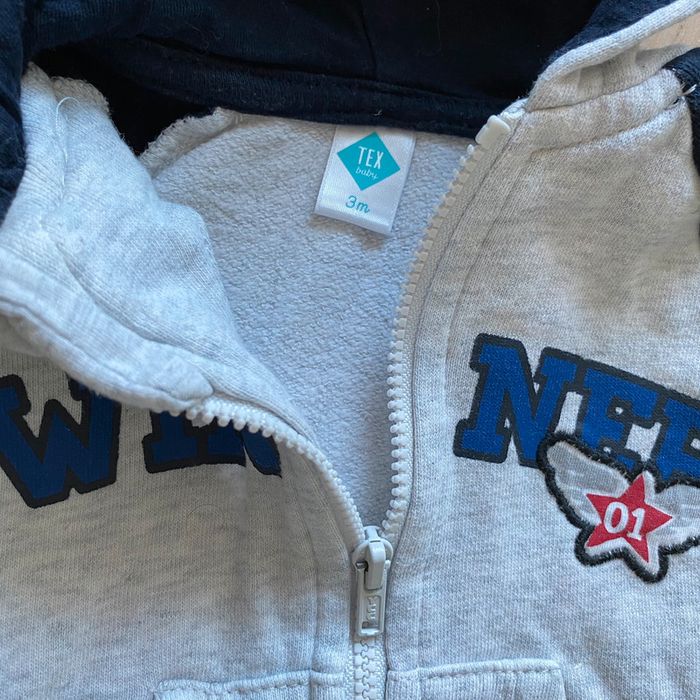 ensemble de sport: veste à capuche + pantalon taille : 3 mois marque : tex état : neuf (R: P1)