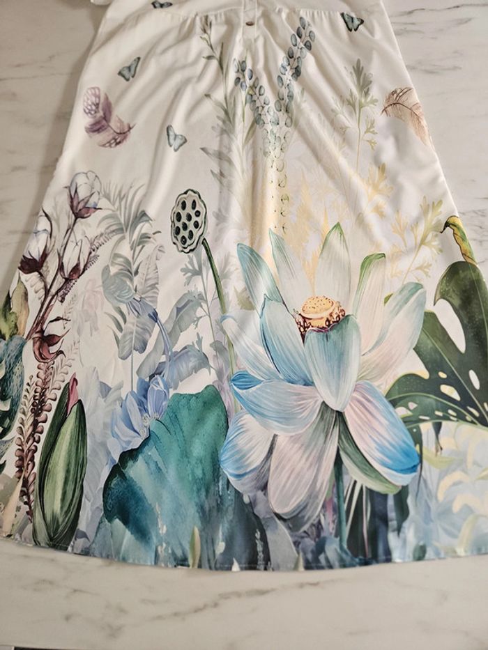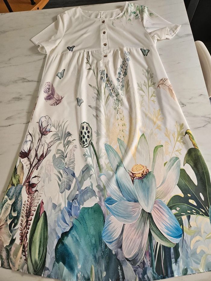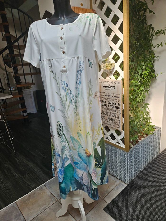 Robe toute légère. Pas de marque mais n'a jamais été portée juste passée en machine. Les dimensions se trouvent sur les photos