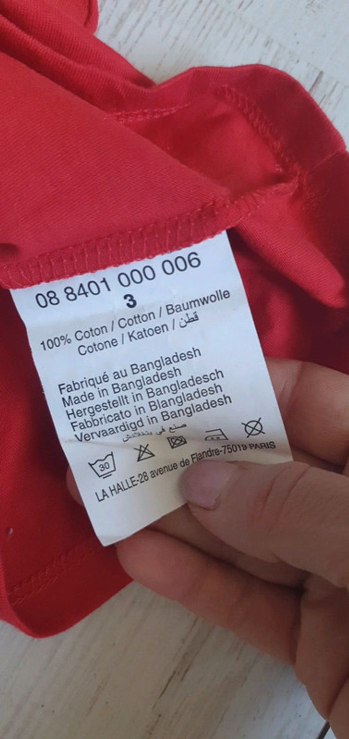 Tee-shirt manches courtes rouge uni la halle 3ans - photo numéro 3