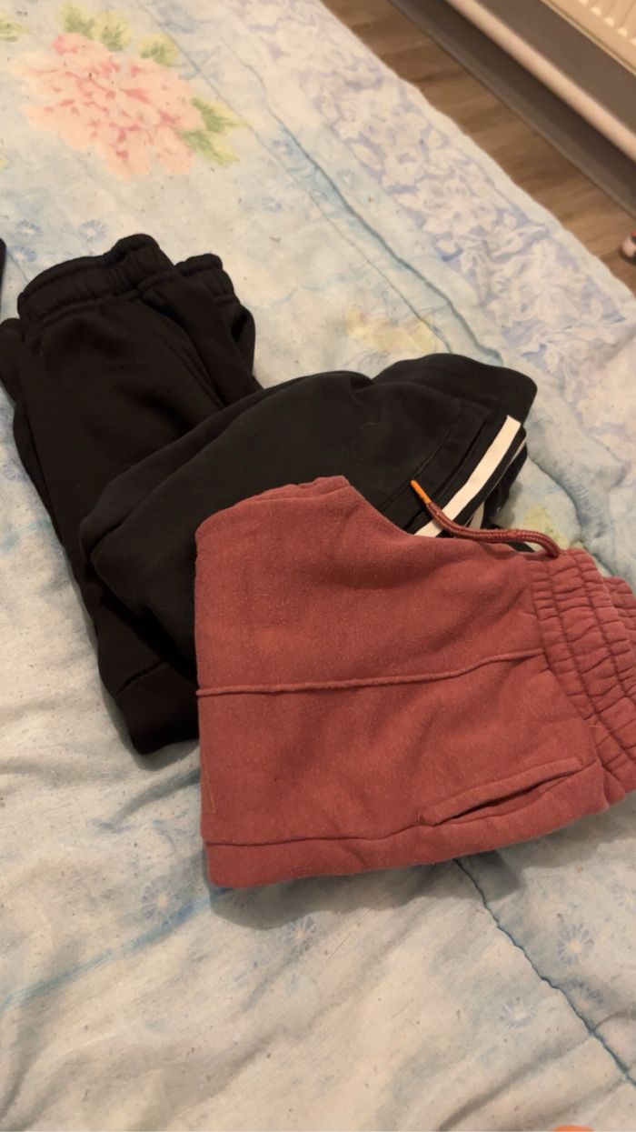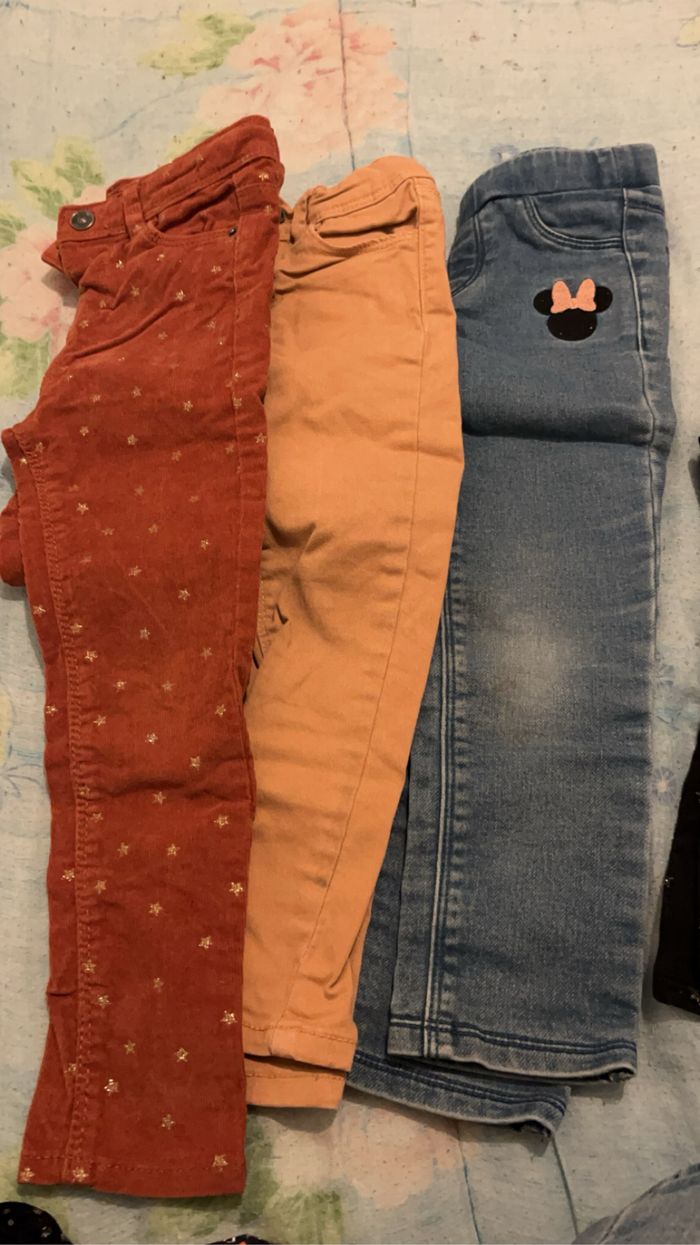 3 jeans en bonne état. 2 leggings dont 1 un peu délavée et le 2eme neuf jamais porter. 3 joggings en bonne état. Plus de photos sur demande n’hésitez pas. 15e le lot ou peut être vendue séparément