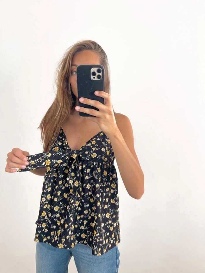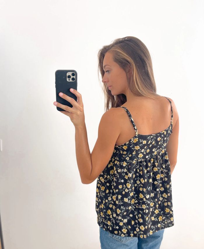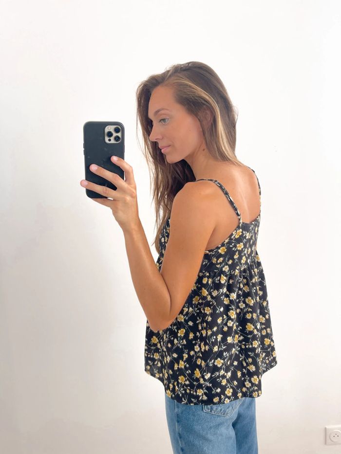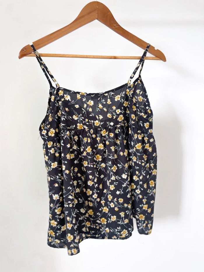 🌟 Débardeur noir blanc et jaune à fleurs - photo numéro 6