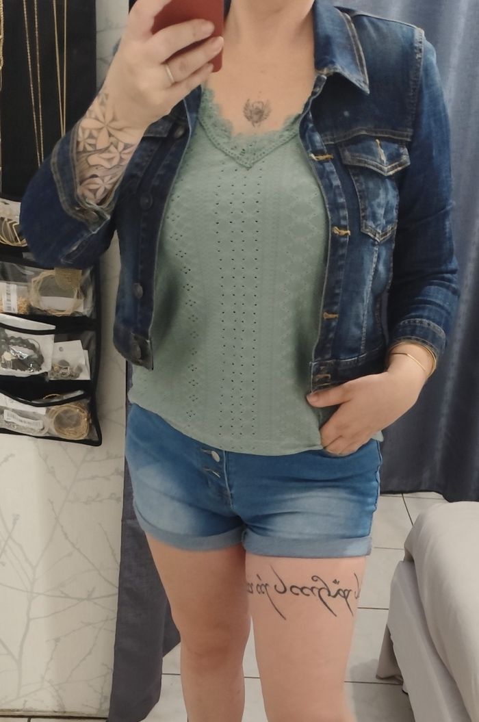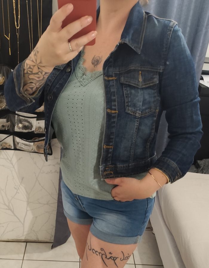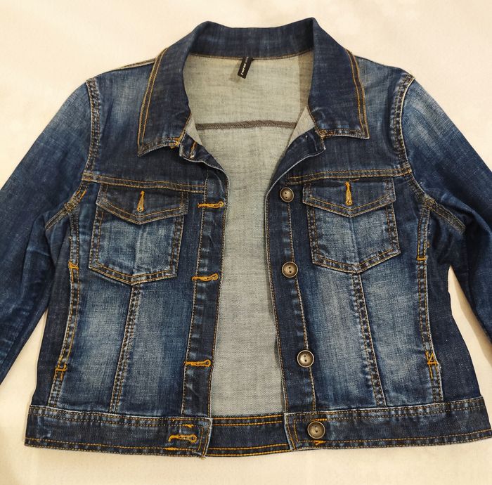 Magnifique veste en jean courte, manches 3/4 de la marque Naf Naf taille 38 (mais en vérité taille plus pour un 36). Portée quelques fois mais en parfait état.