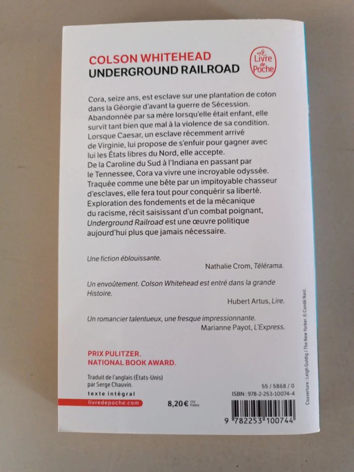 Underground Railroad Colson Whitehead. Voici le lien pour voir tous mes livres pour réduire les frais de port et avoir des réductions automatiques par lot de 3 ou 5 : #romain75015_Livres. Envoi rapide et soigné, bien protégé pour le transport.