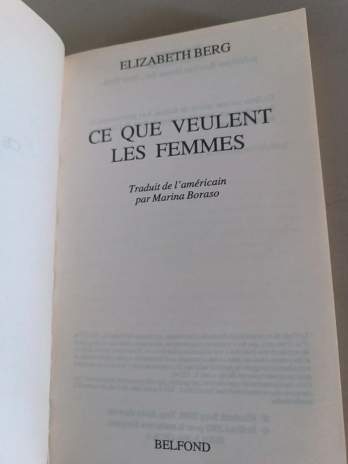 Ce que veulent les femmes Elizabeth Berg. La couverture à une pliure. Voici le lien pour voir tous mes livres pour réduire les frais de port et avoir des réductions automatiques par lot de 3 ou 5 : #romain75015_Livres. Envoi rapide et soigné, bien protégé pour le transport.