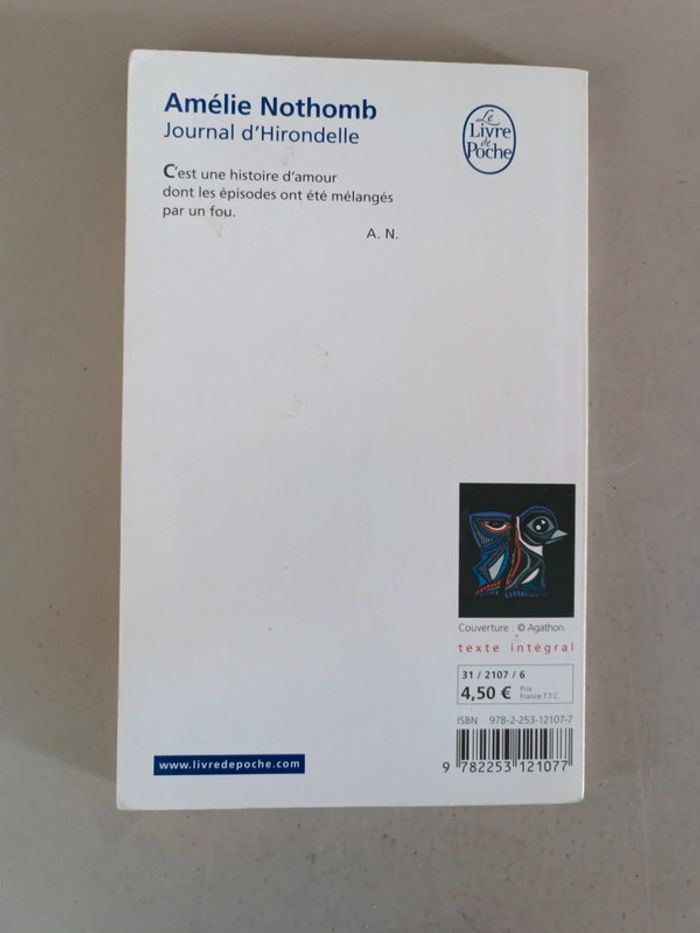 Journal d'hirondelle d'Amélie Nothomb. Voici le lien pour voir tous mes livres pour réduire les frais de port et avoir des réductions automatiques par lot de 3 ou 5 : #romain75015_Livres. Envoi rapide et soigné, bien protégé pour le transport.