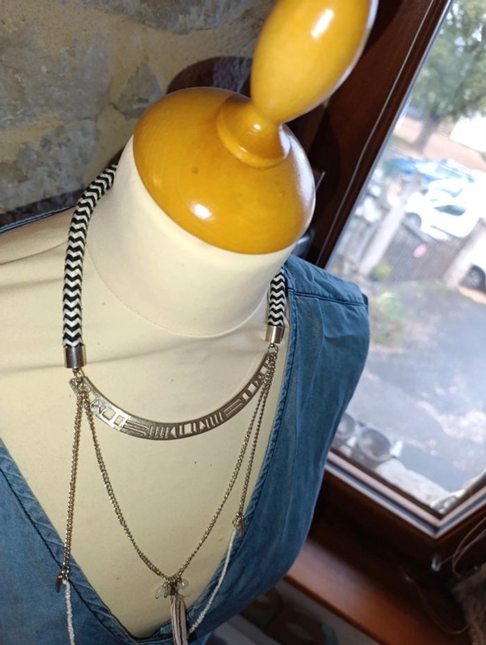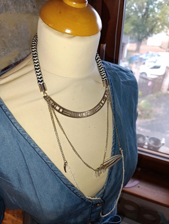 Superbe collier original 3 rangs devant et un seul derrière au niveau du cou #collier #sautoir #lililesyeuxbleusaccessoires