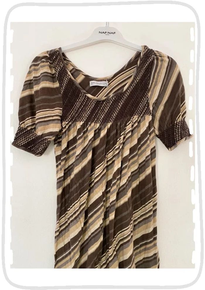 Zara Robe Rayures Marron Taille 36/S - photo numéro 1