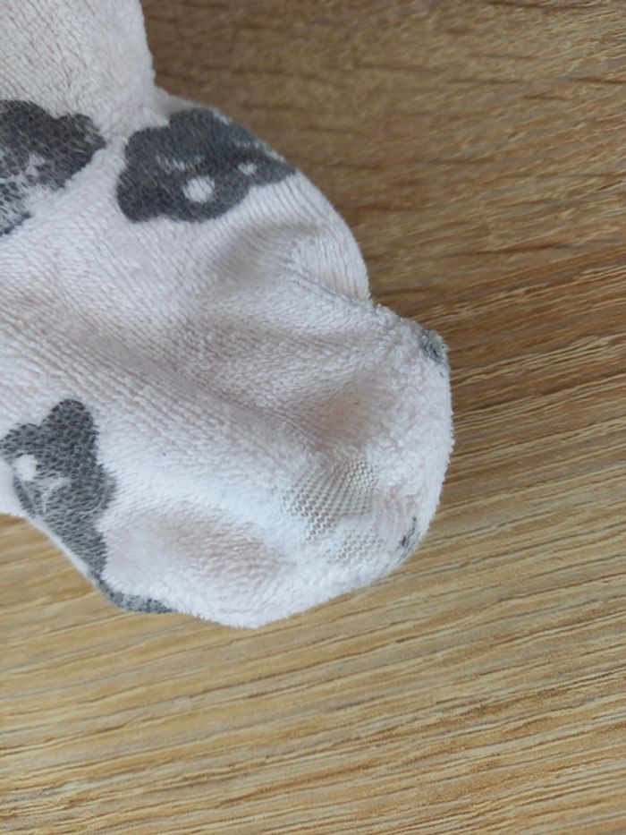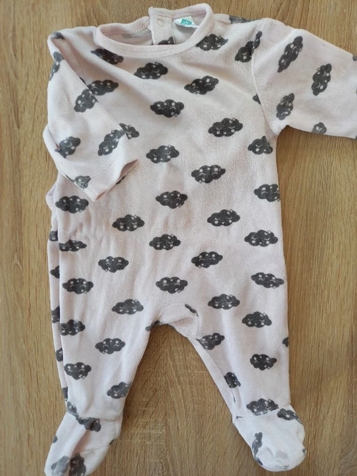 Pyjama 3 mois porté plusieurs fois. Abîmé au pied (voir photo) mais pas de trou