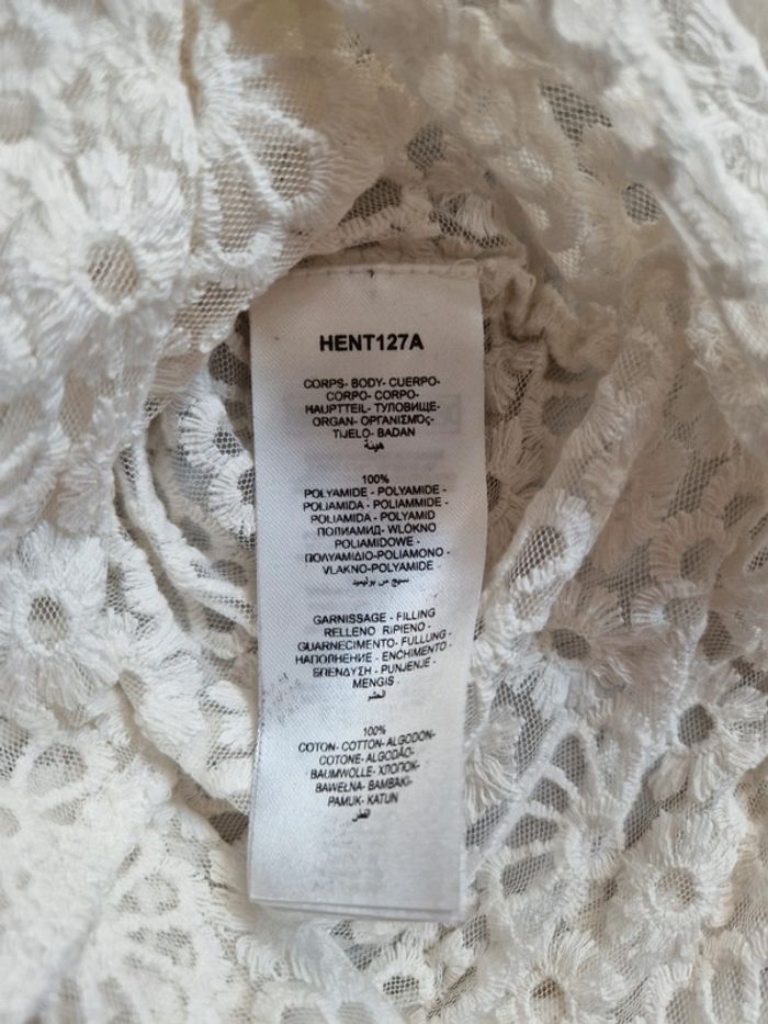 Blouse Naf Naf neuve avec étiquette XS écrue avec broderies fleurs et transparence - photo numéro 6