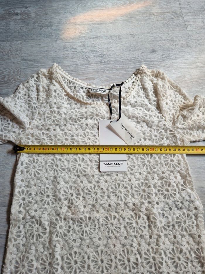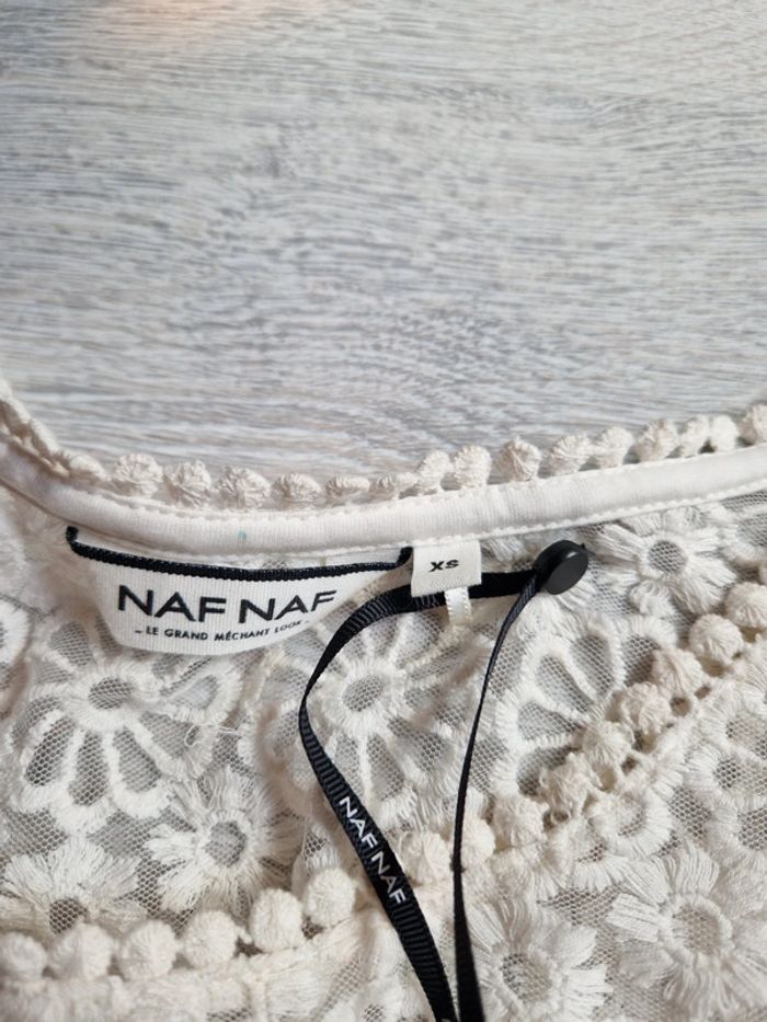 Blouse Naf Naf neuve avec étiquette XS écrue avec broderies fleurs et transparence - photo numéro 3